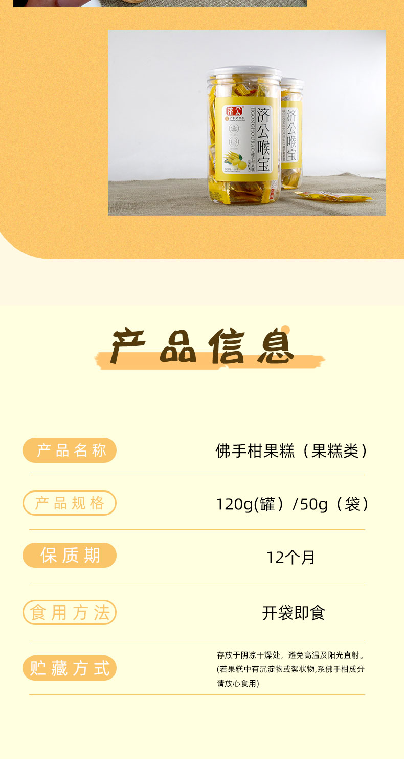 广东济公佛手柑果糕 喉宝软糖潮汕特产