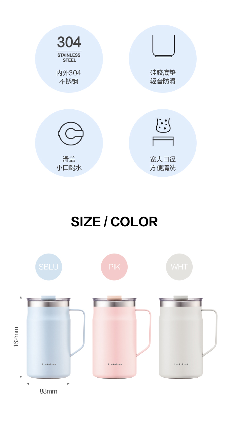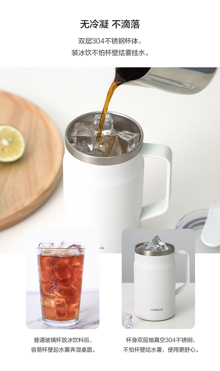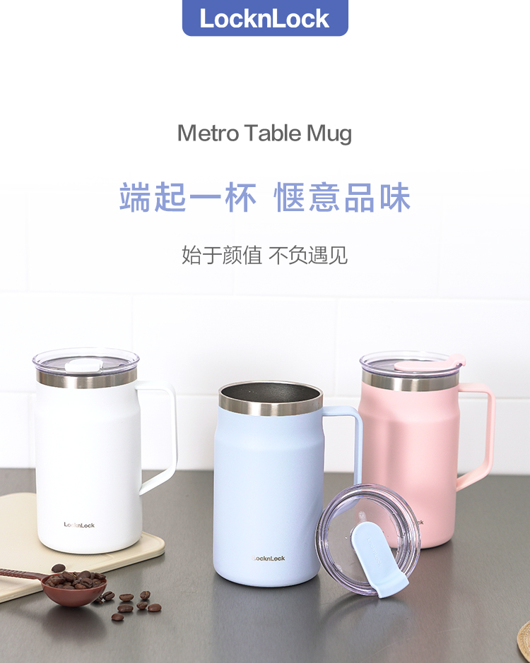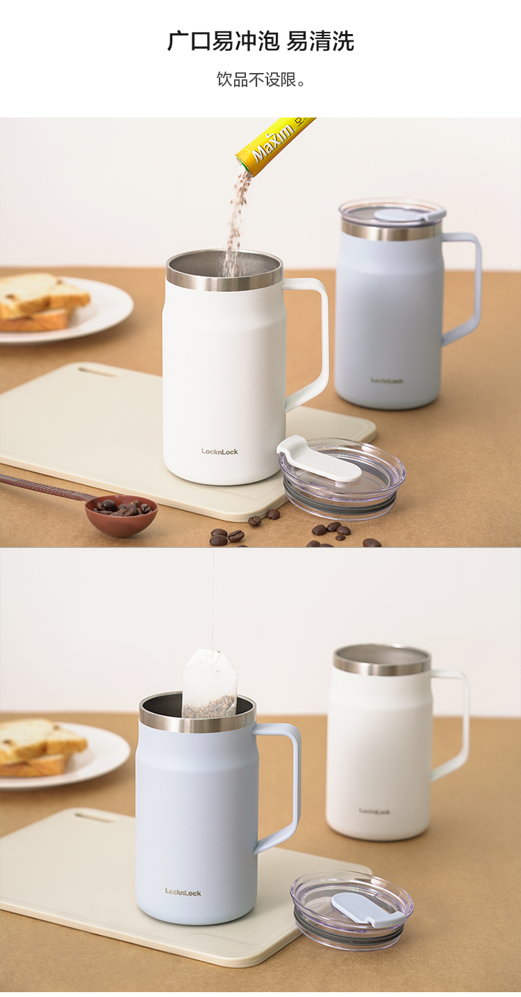乐扣乐扣 遇见马克杯 内外304不锈钢 广口保冷保温杯带盖 48小时发货