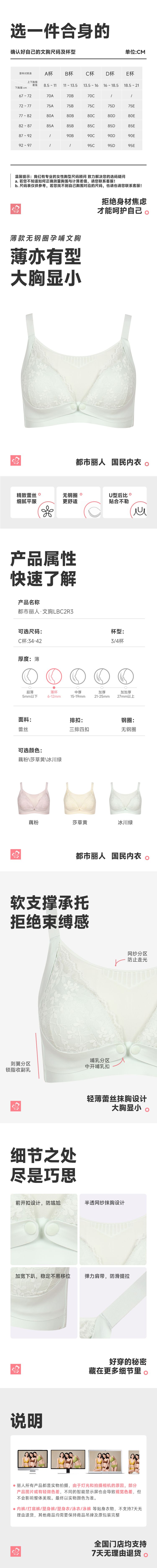 都市丽人内衣C杯薄文胸蕾丝内衣3/4杯内衣孕哺内衣三排四扣无钢圈LBC2R3