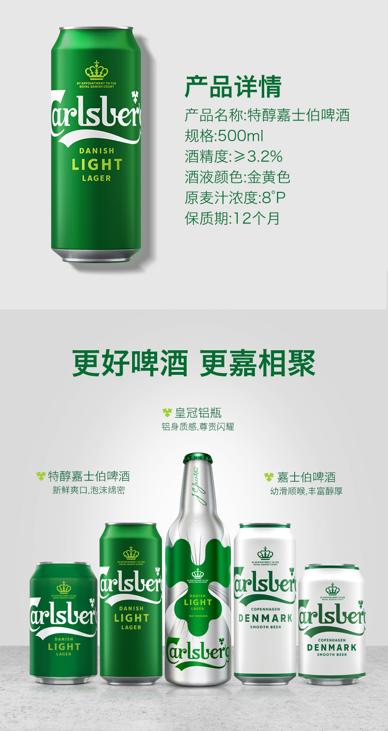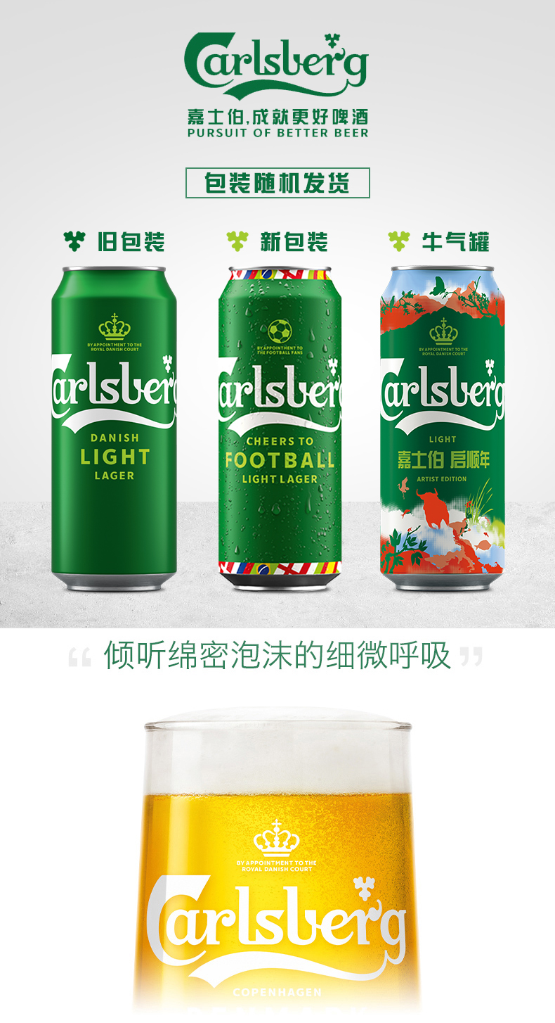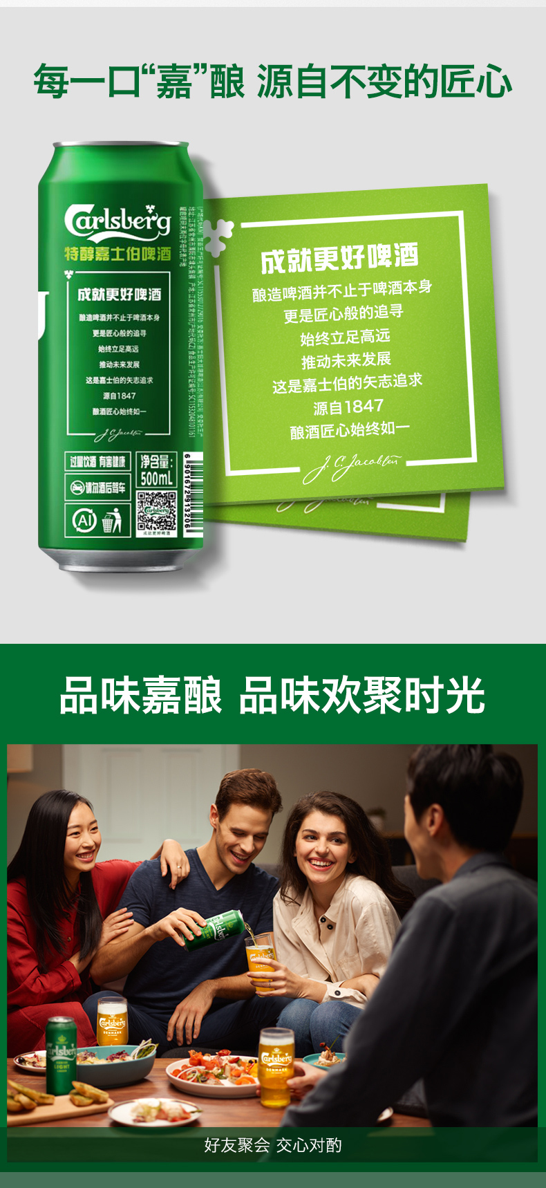 【看球来一罐!】特醇嘉士伯啤酒 500ml*18罐 Carlsberg始于1847年 精选小麦酿 醇香 包邮