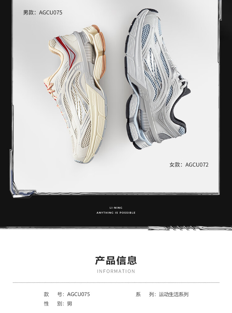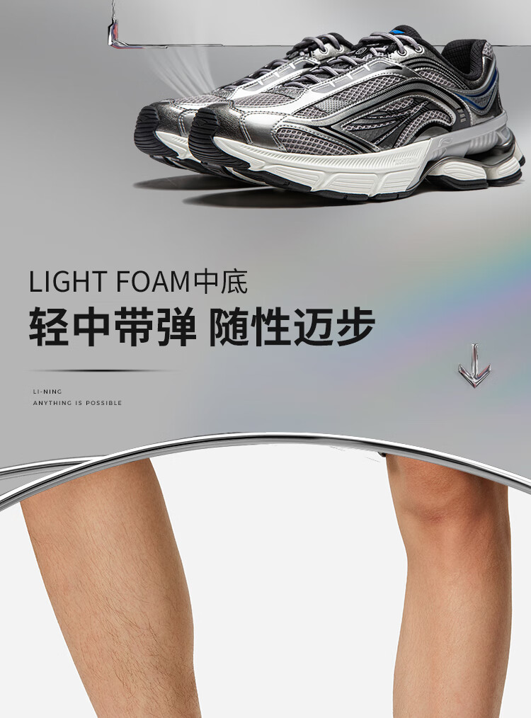 李宁极光RENEW男子跑鞋2024新款回弹支撑休闲运动鞋子AGCU075