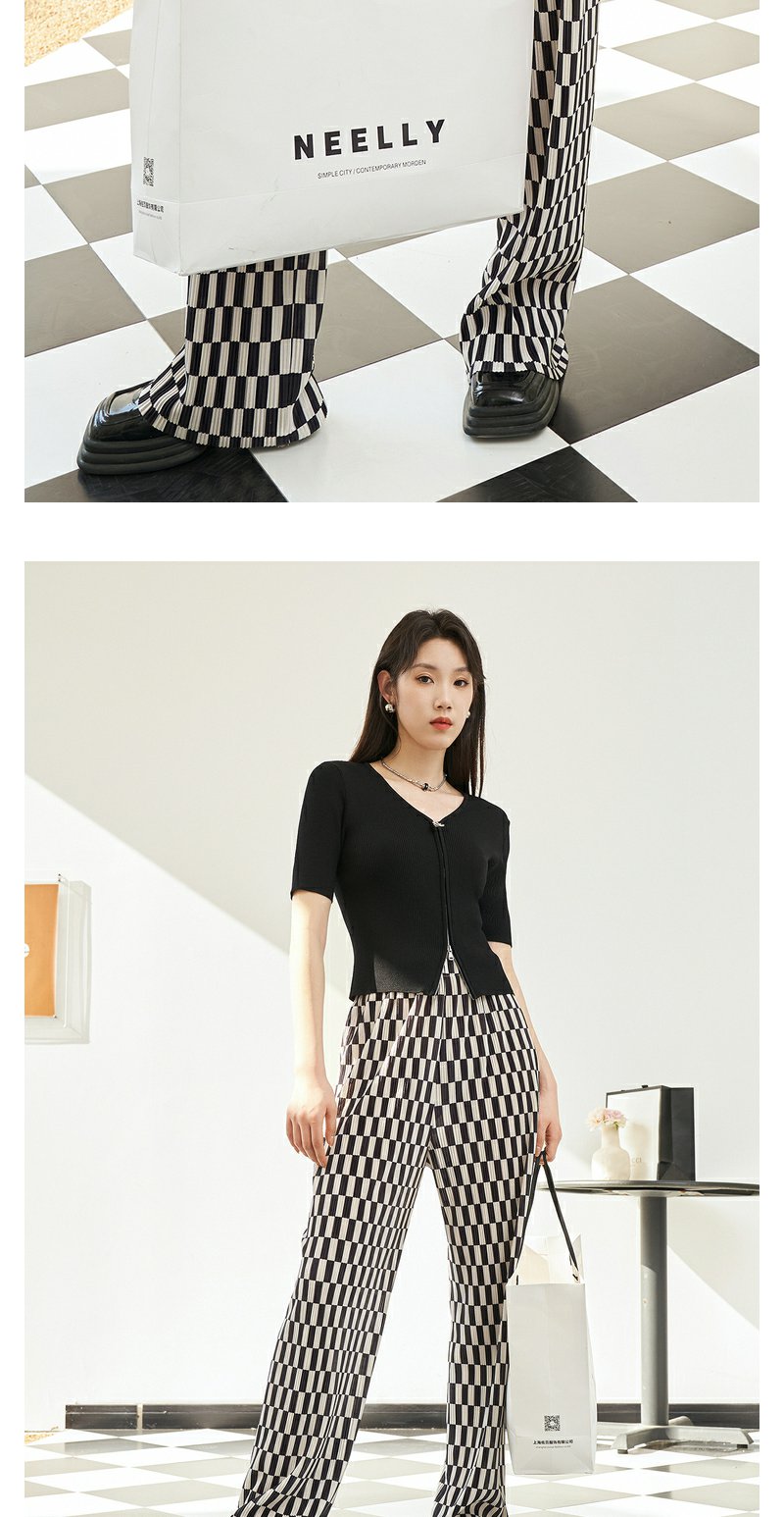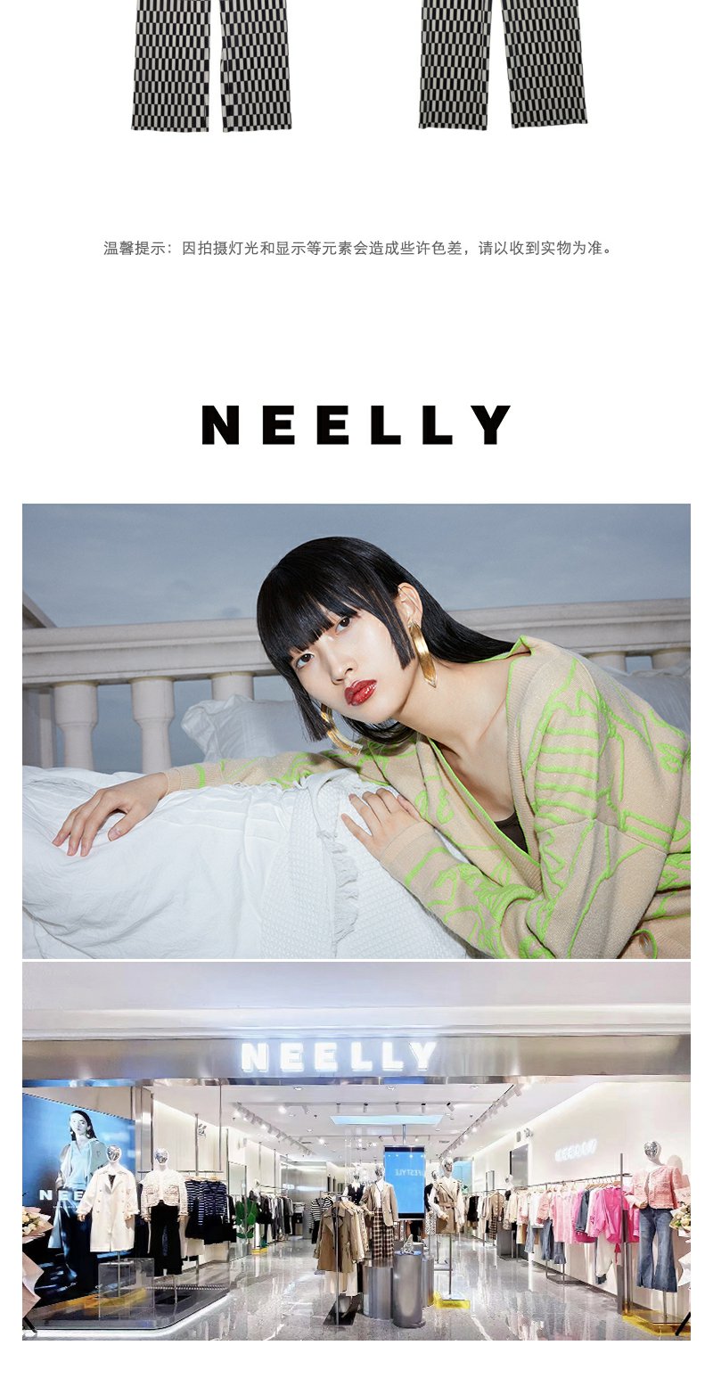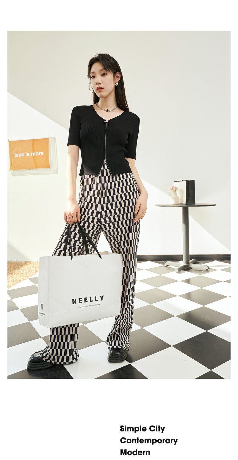 NEELLY纳俪商场同款个性黑白格子高腰休闲裤女宽松舒适百搭直筒裤N23044H03330