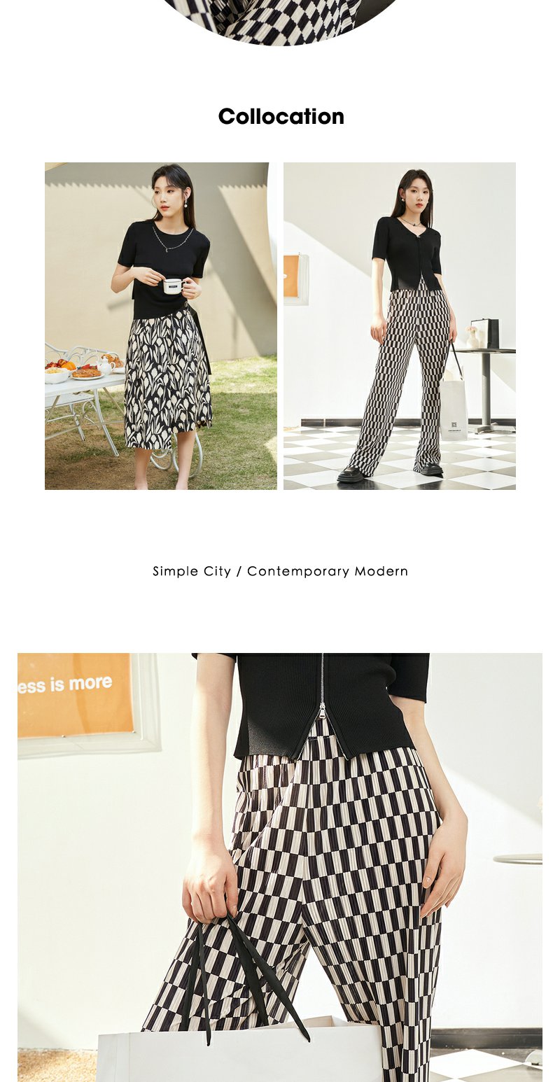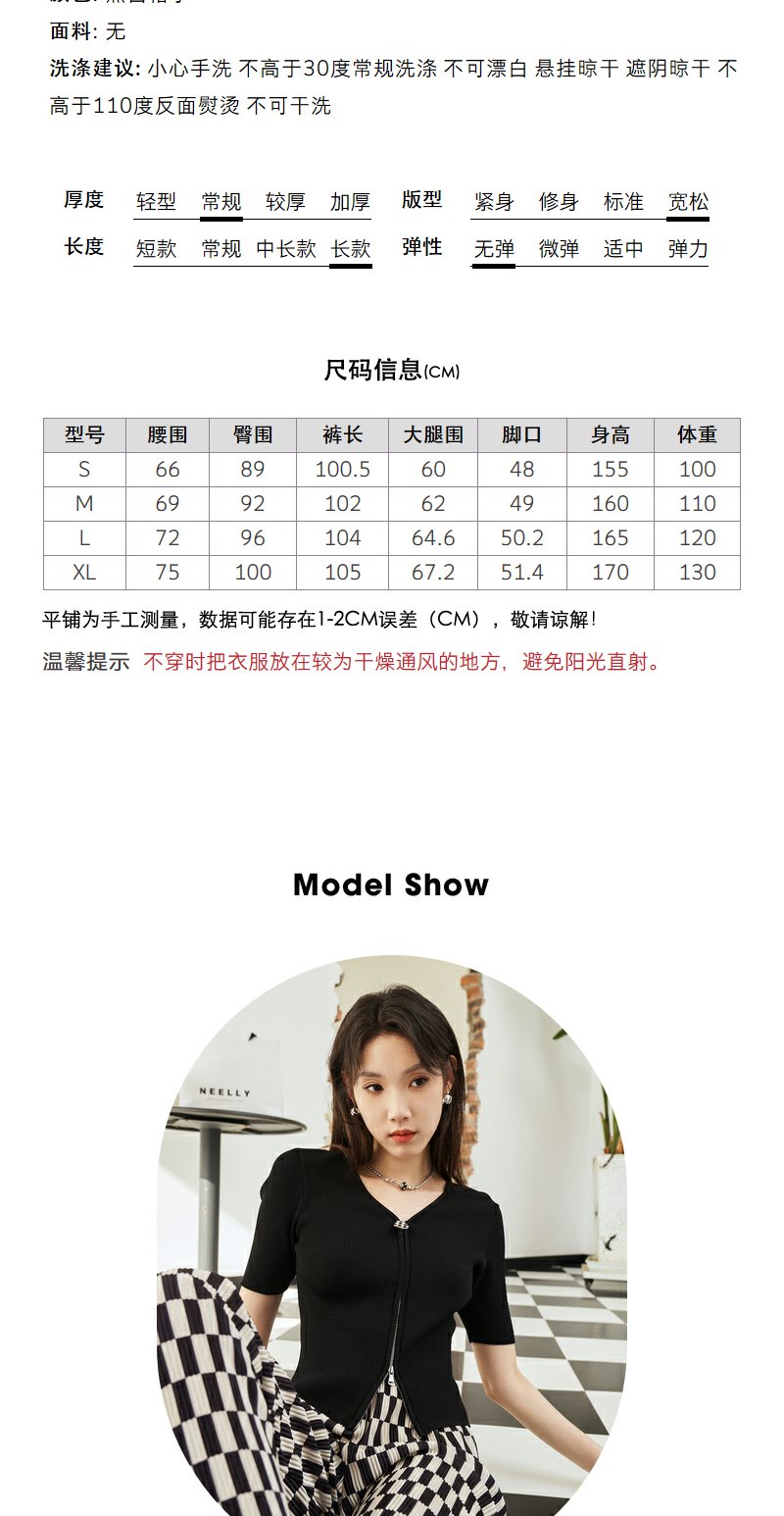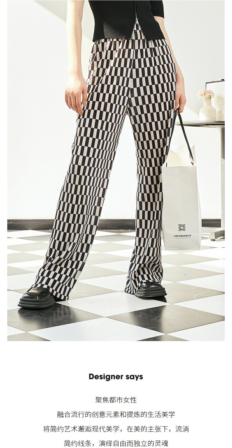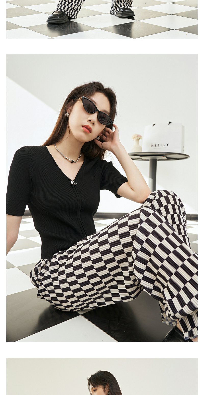 NEELLY纳俪商场同款个性黑白格子高腰休闲裤女宽松舒适百搭直筒裤N23044H03330