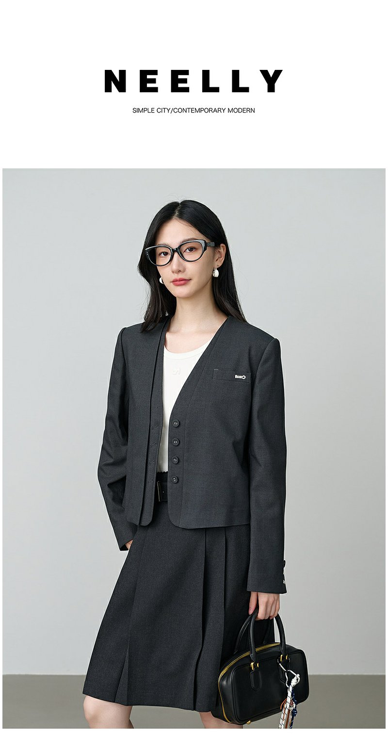 NEELLY纳俪商场同款秋季新款时尚高知感短外套女百搭随性西装外套N25084C04604