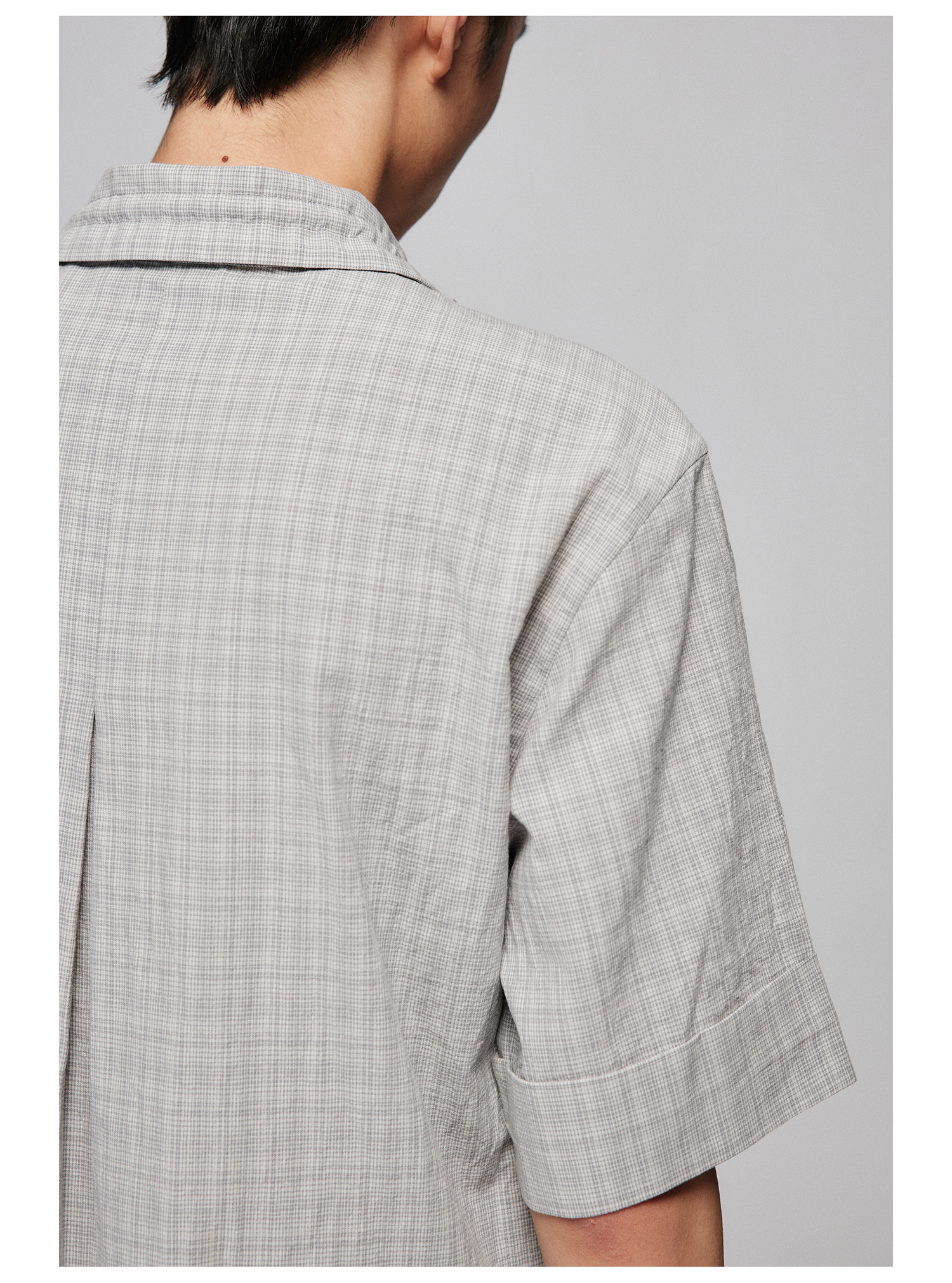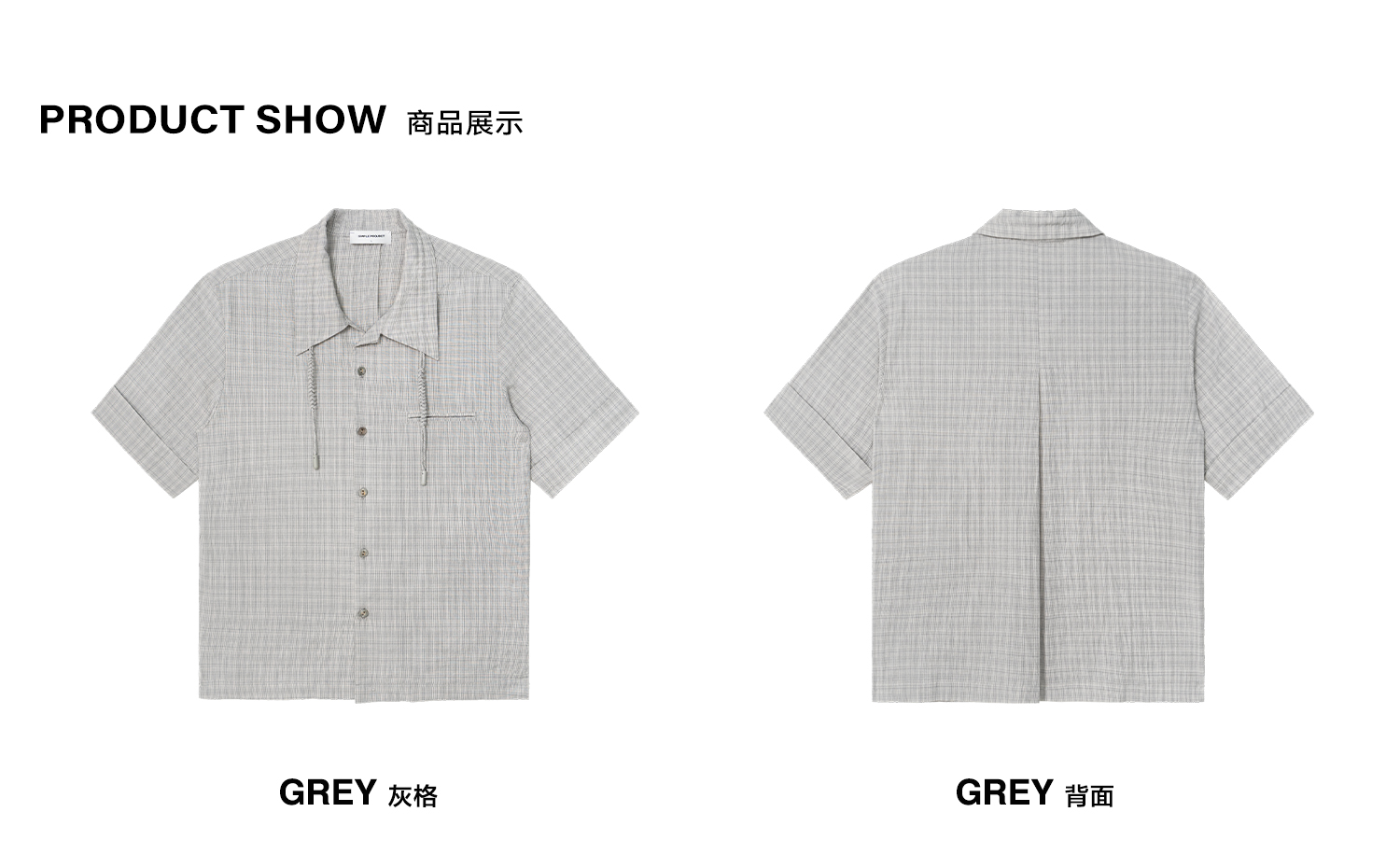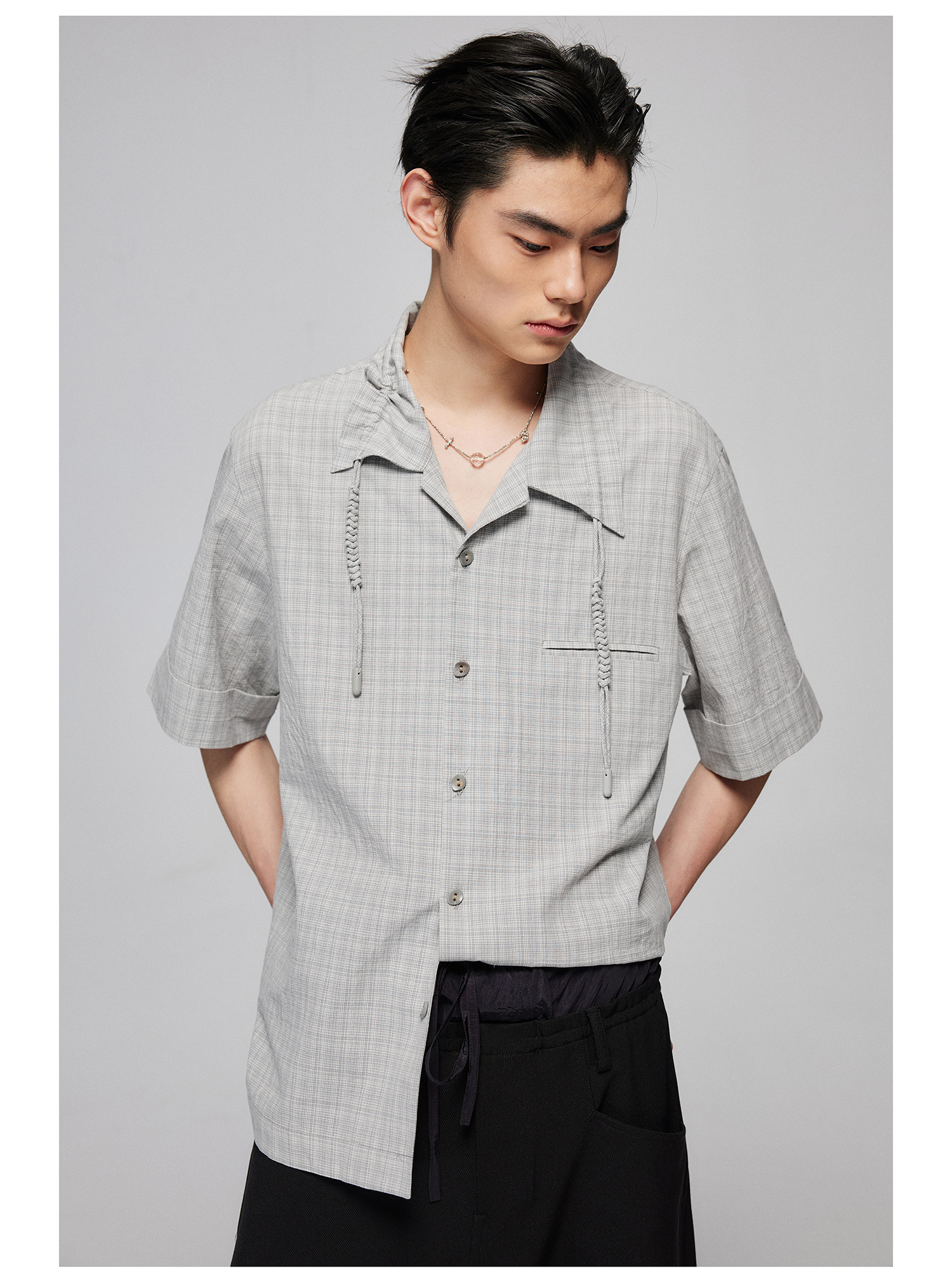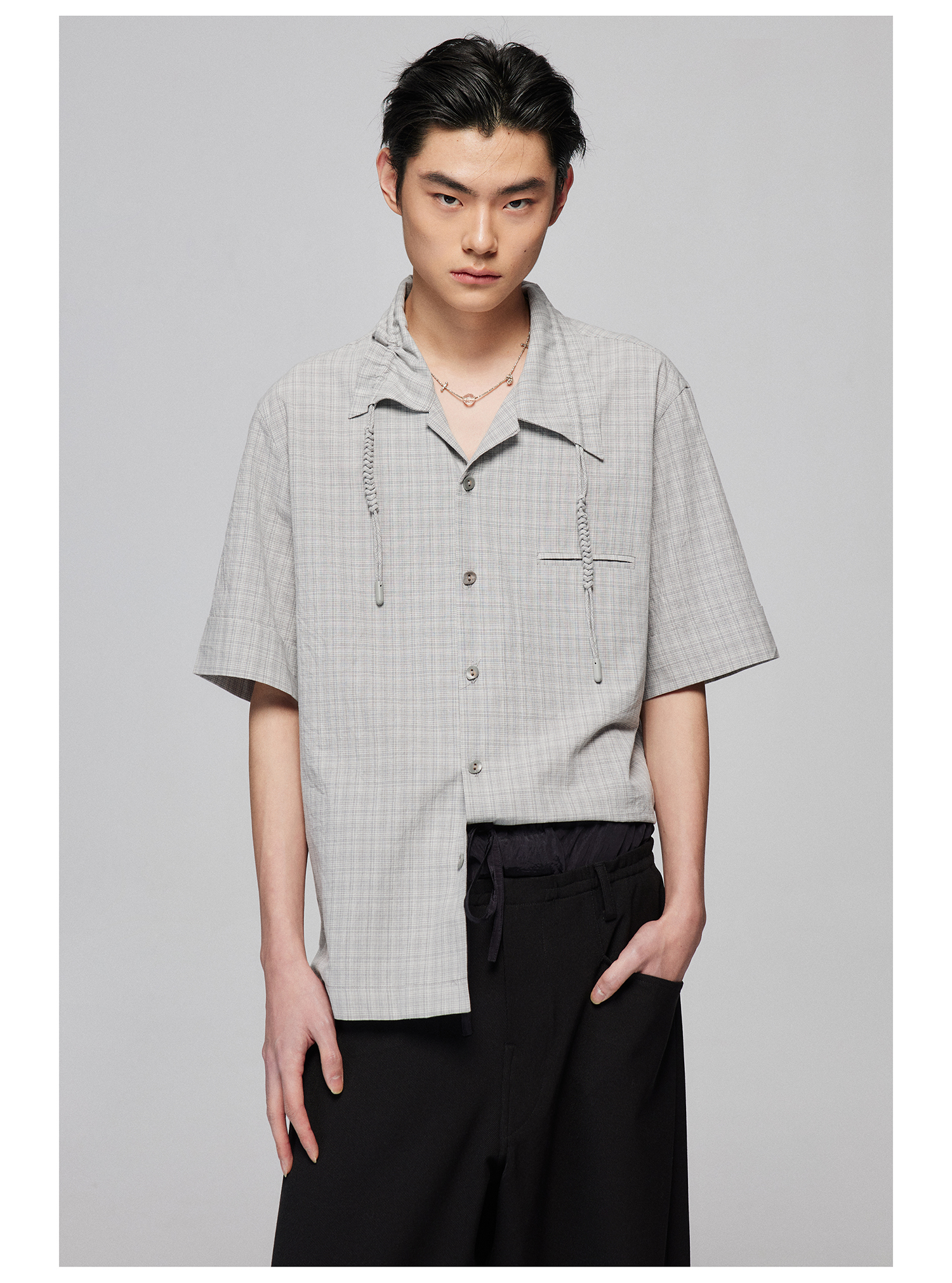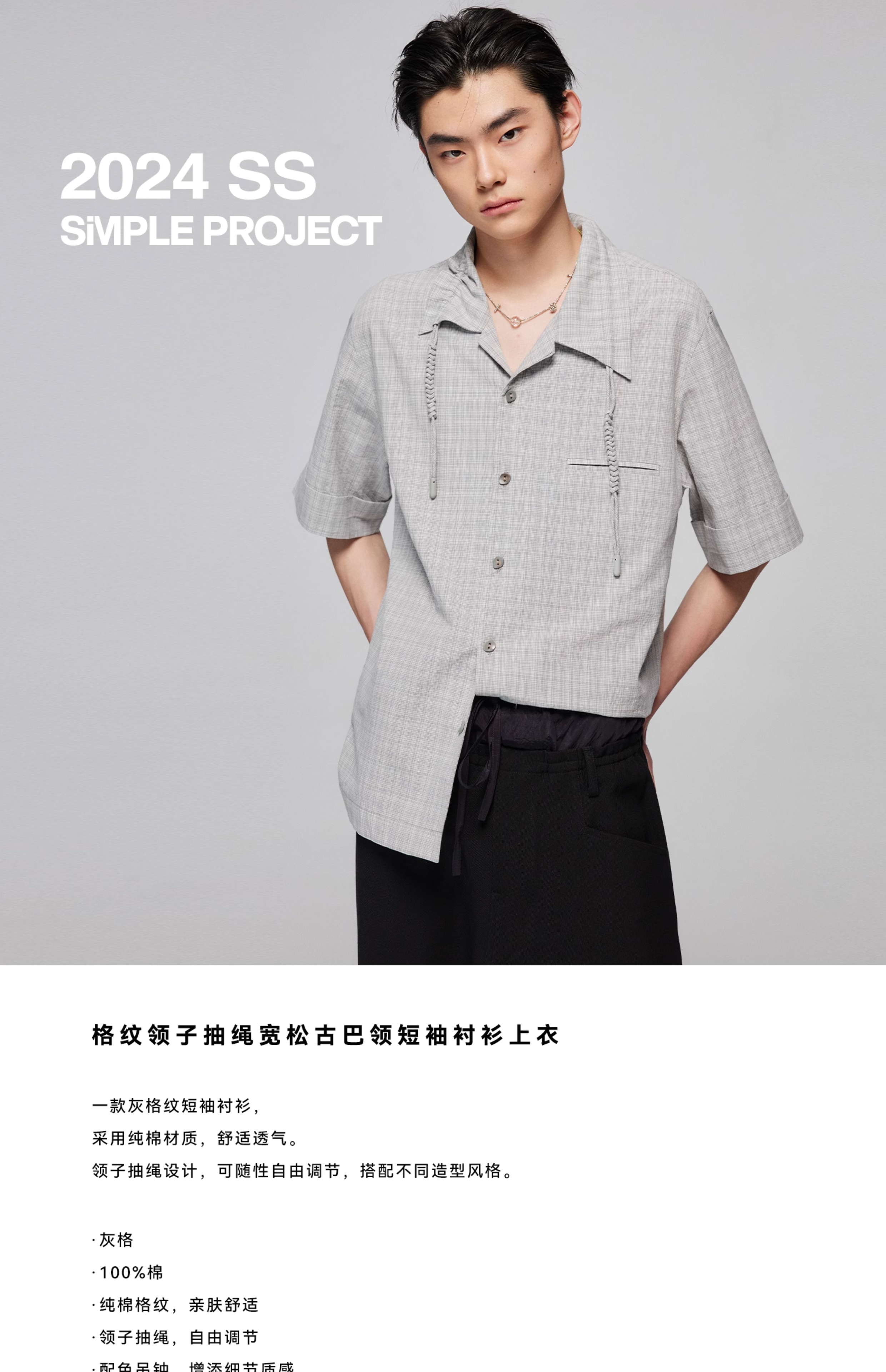 Simple Project/Y2487/纯棉格纹领子抽绳宽松古巴领短袖衬衫