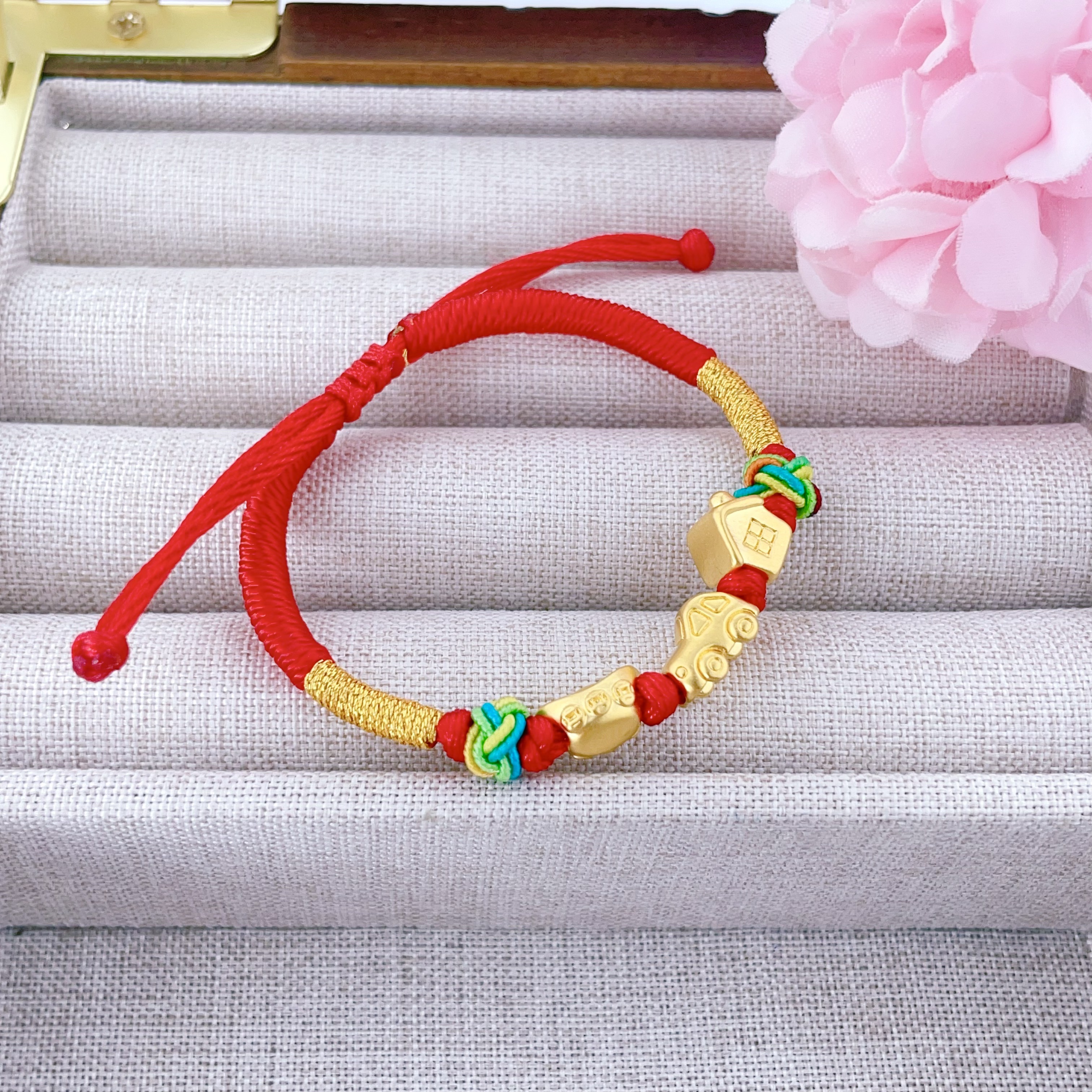 【限时7.5折】【定价黄金】足金 #儿童/宝宝 无氰5D硬金有房有车有钱花红绳调节手链成品手串(宝宝款,适合0-3岁宝宝)(AJ5DSC00015)(预售产品下单后不退款不退货不换货不补差价)