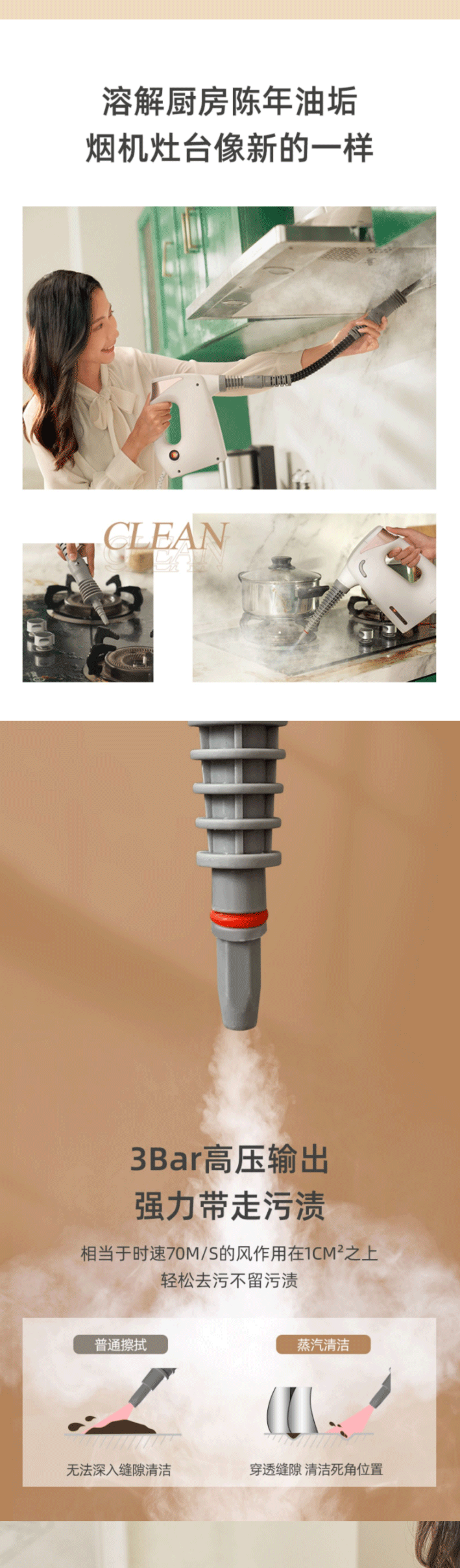 飞乐思高温蒸汽清洁机小型高压厨房油烟机消毒家电家用蒸汽清洗机