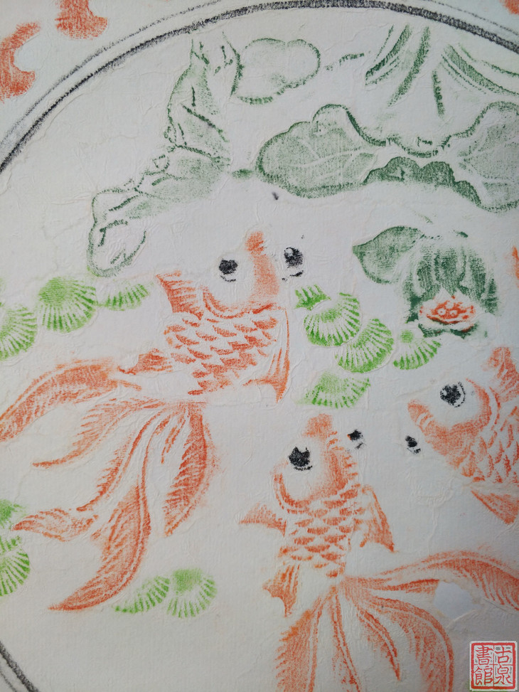 【文创】原拓挂轴戏鱼图彩拓WG056