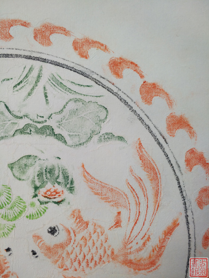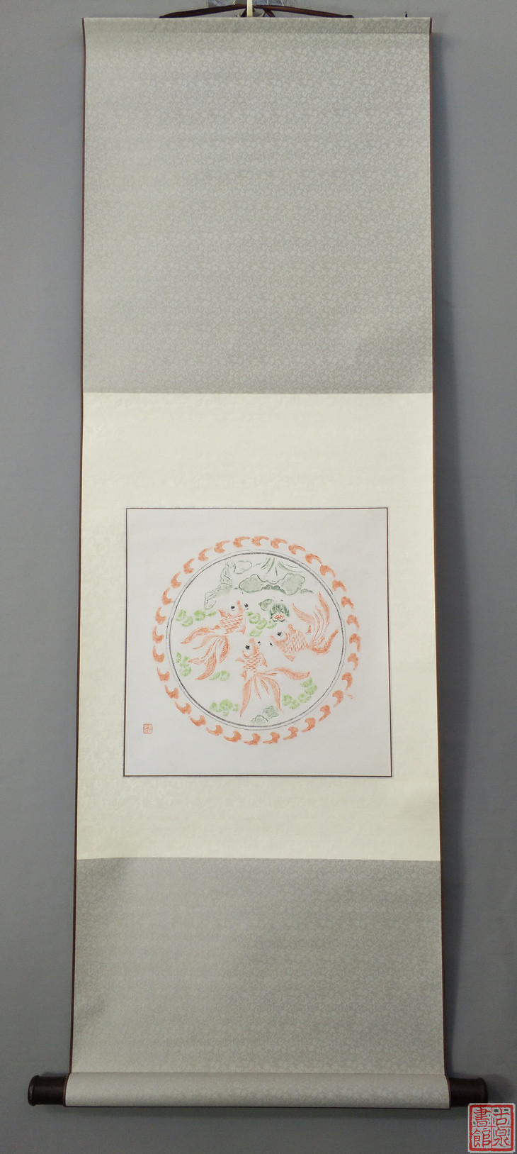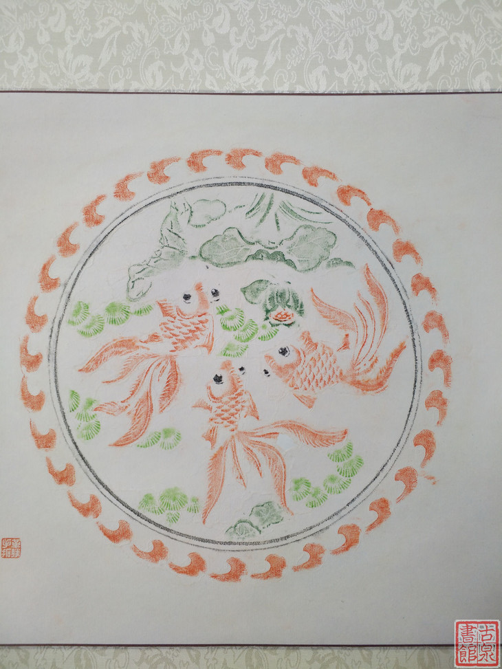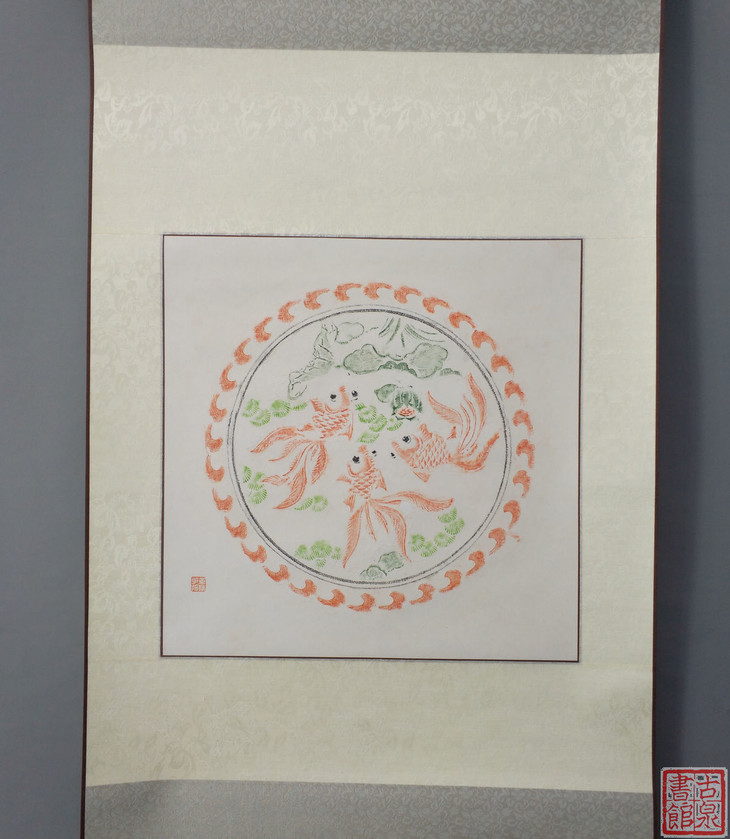 古泉书馆文创【戏鱼图彩拓】原拓挂轴