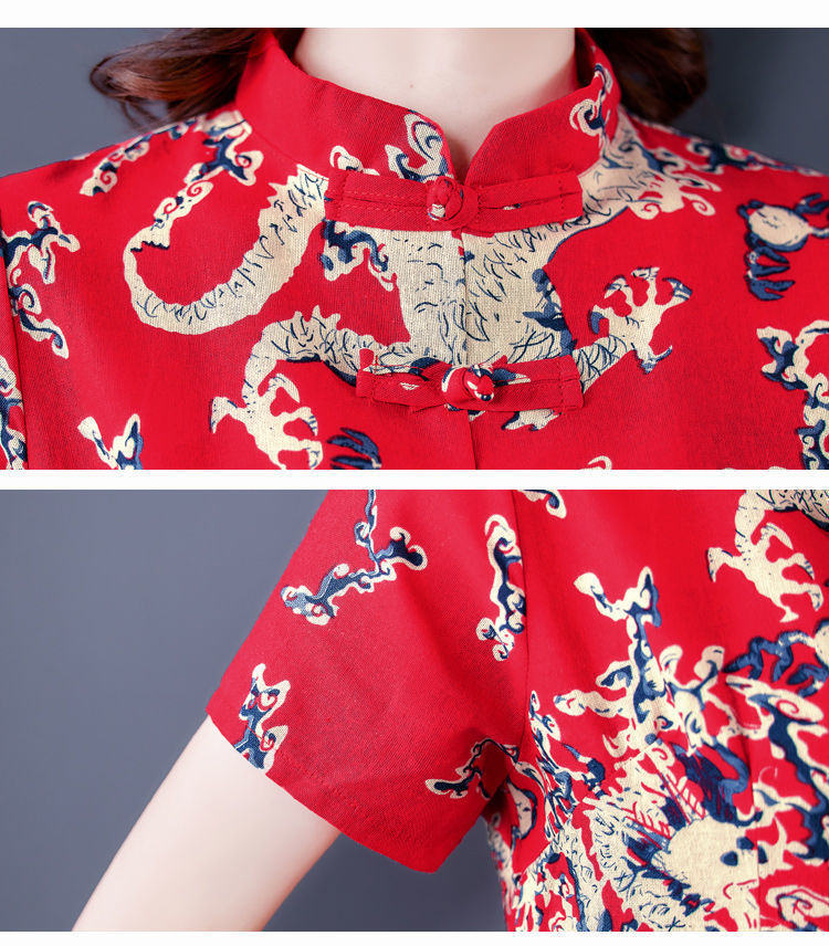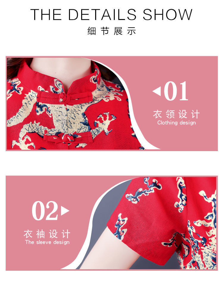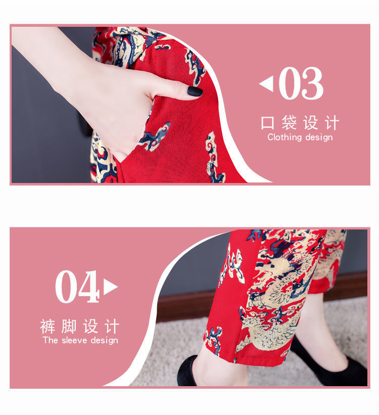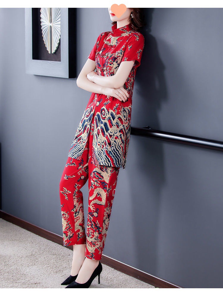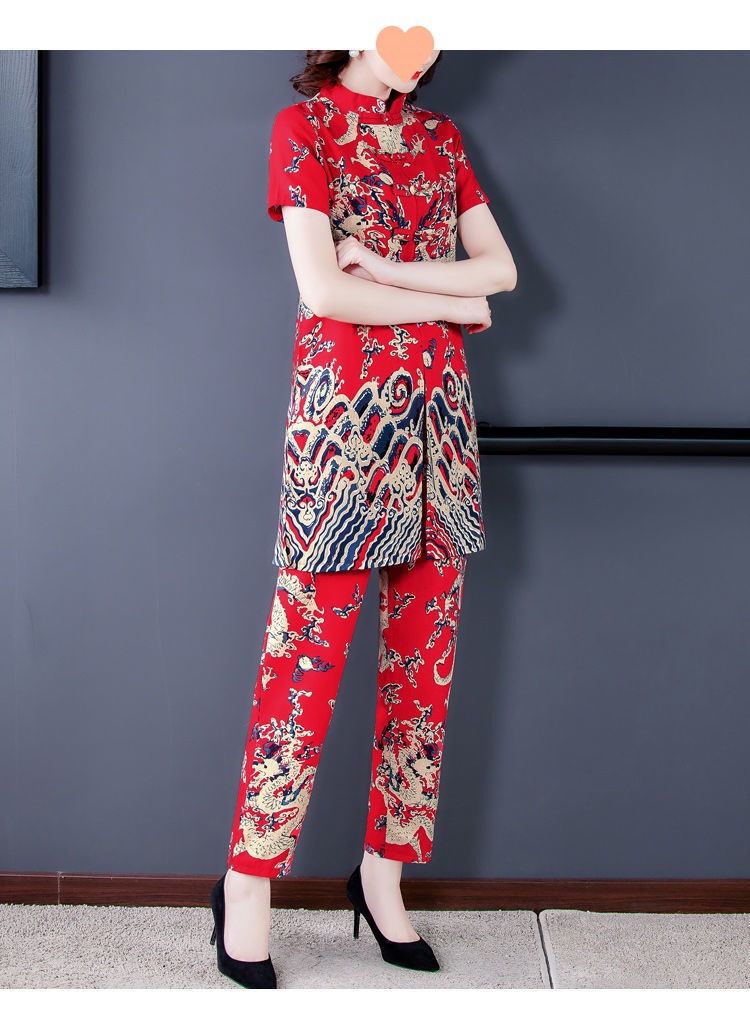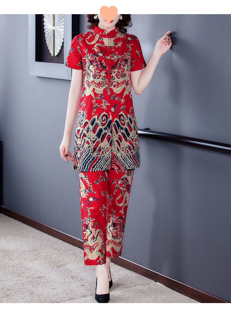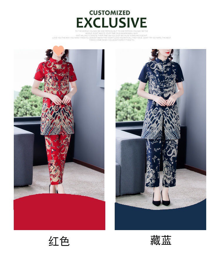 夏季新款民族风棉麻时尚休闲套装洋气唐装休闲裤妈妈旗袍两件套DD