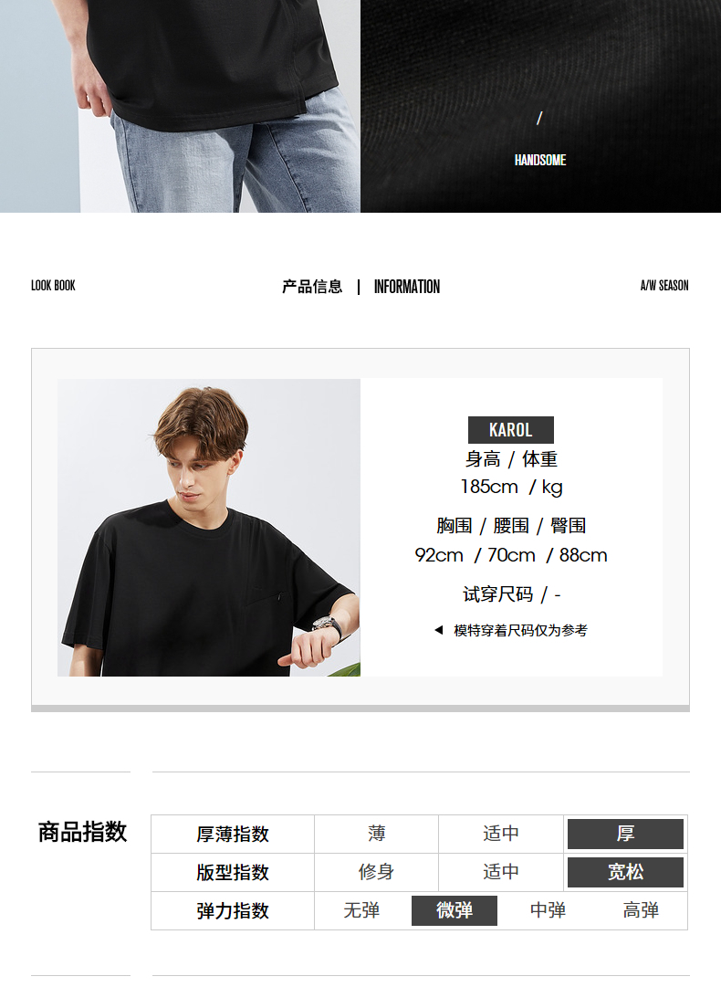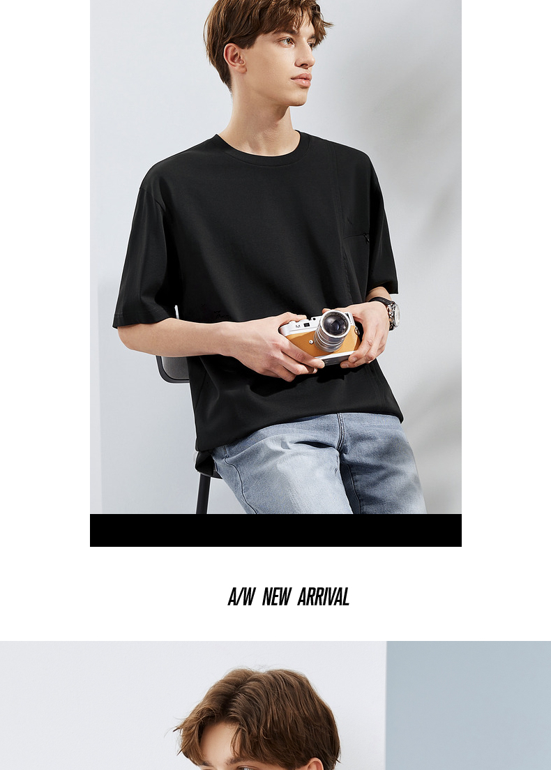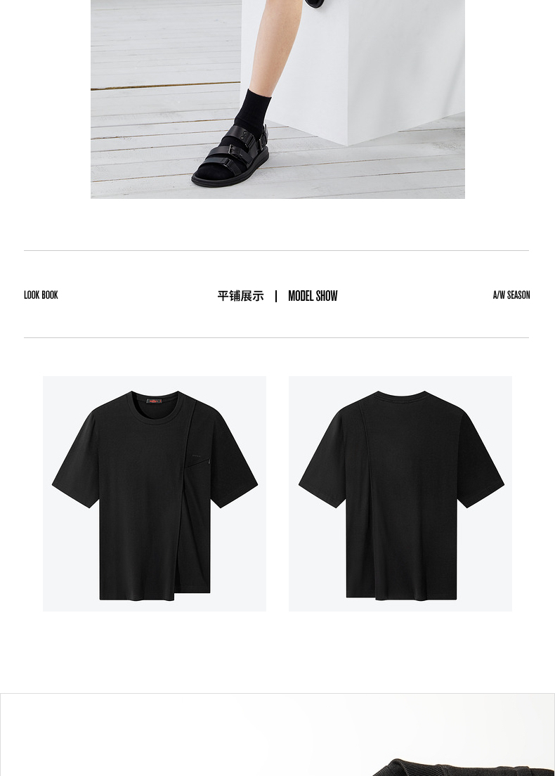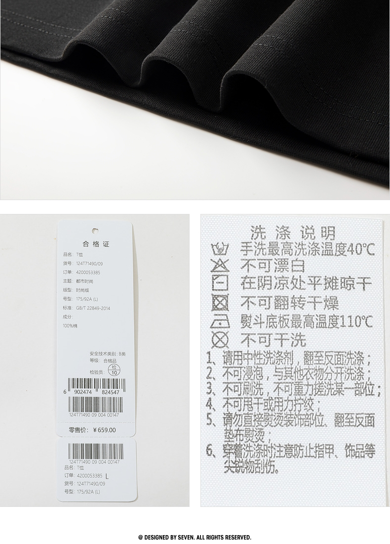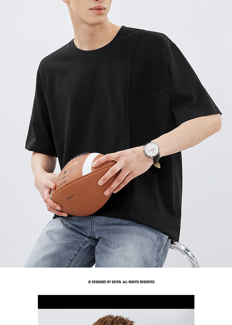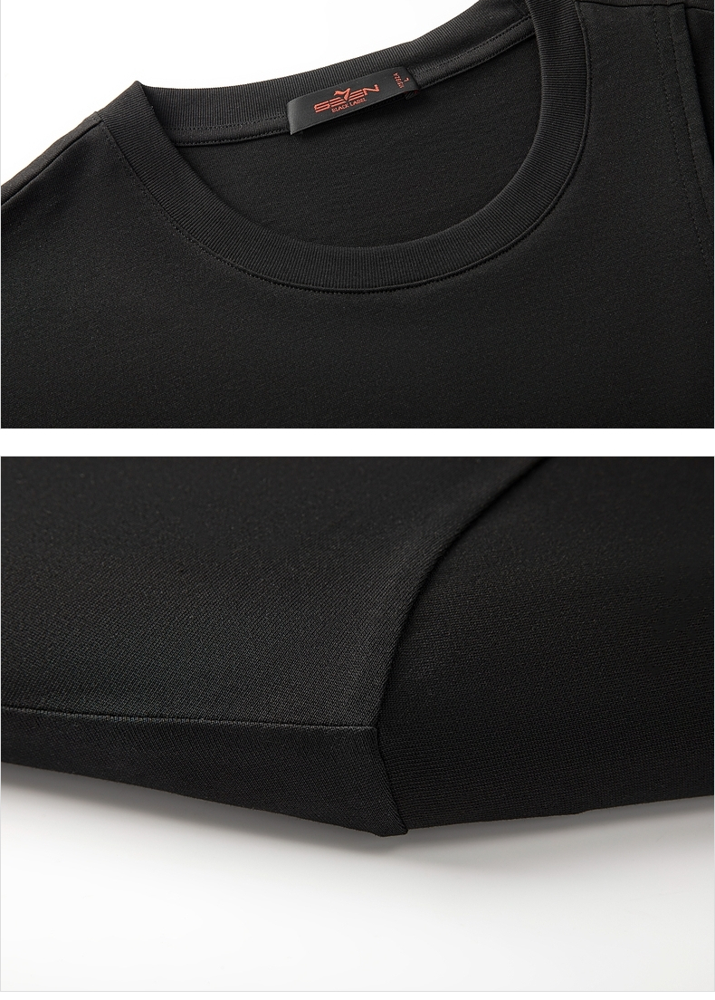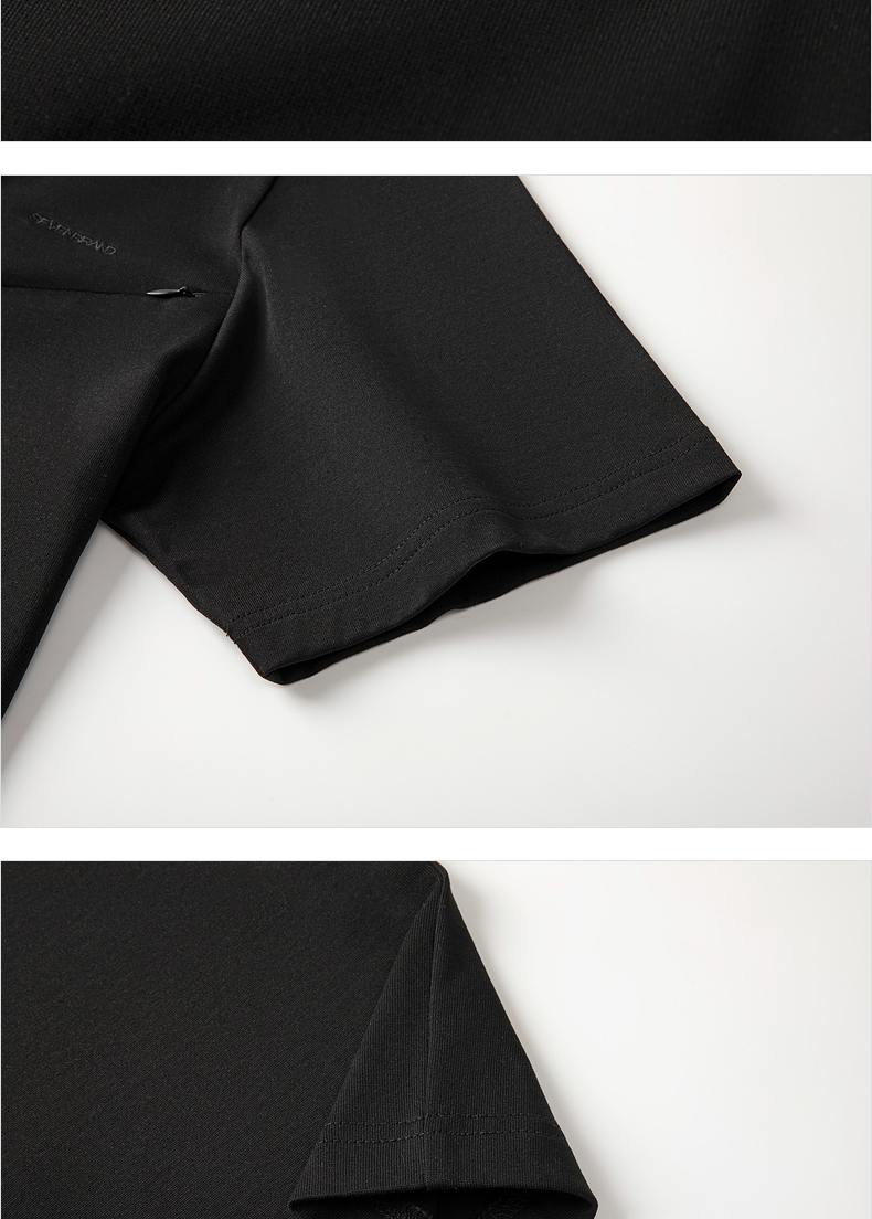 【100%新疆棉】柒牌短袖T恤男夏季新款时尚潮流拼接黑色圆领上衣 124T71490
