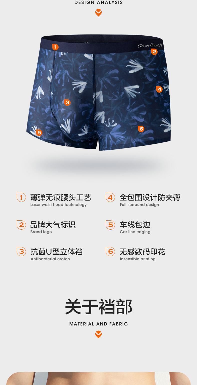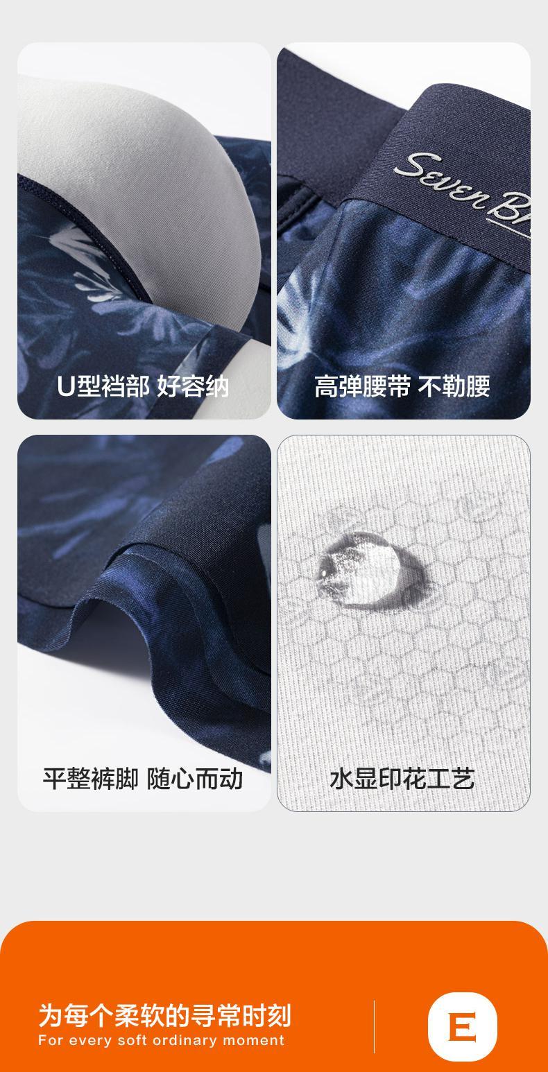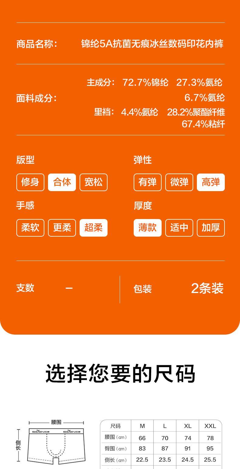 【礼盒2条装】柒牌男士内裤冰丝锦纶夏季薄款抗菌短裤数码印花无痕男生平角裤衩 124F70310