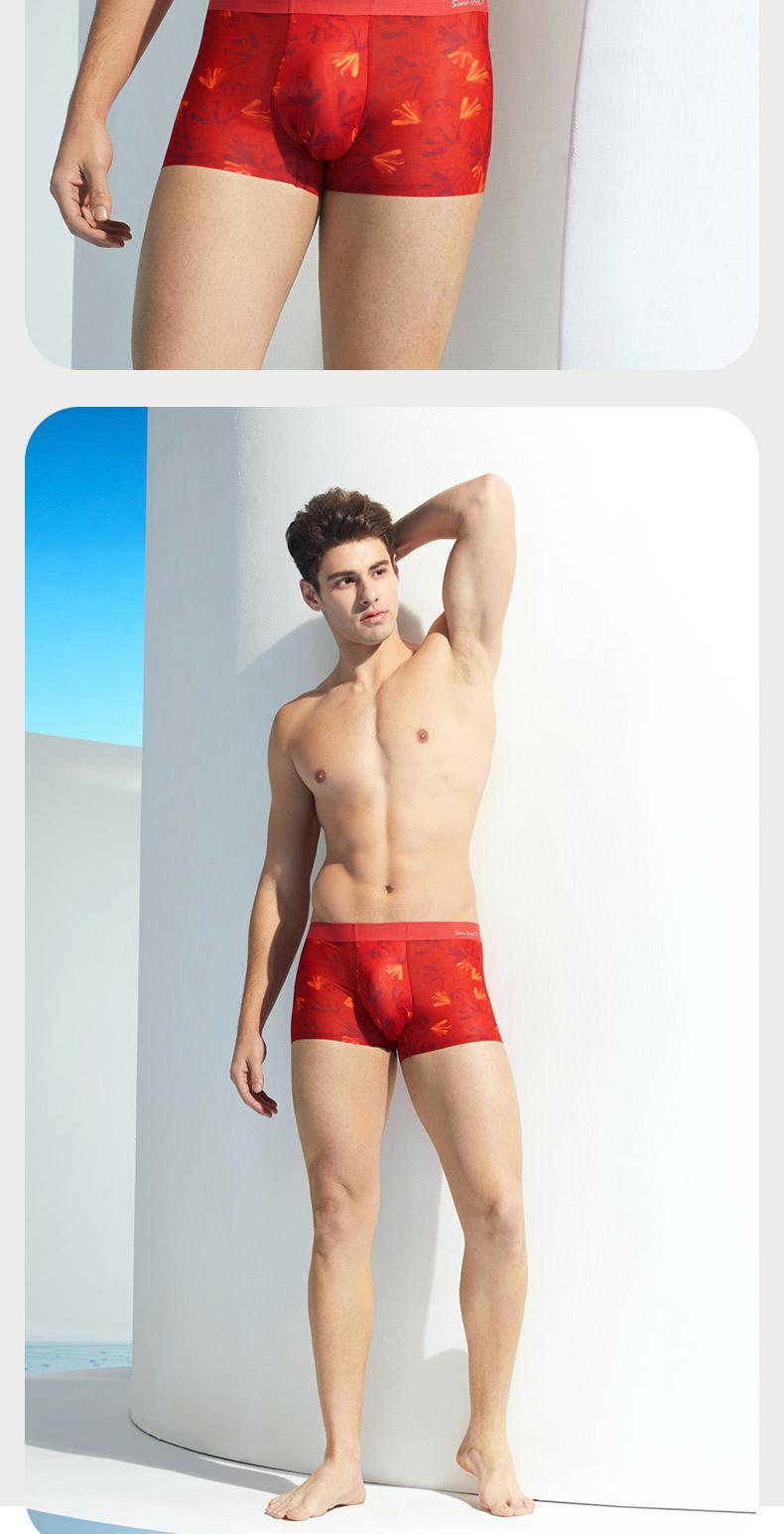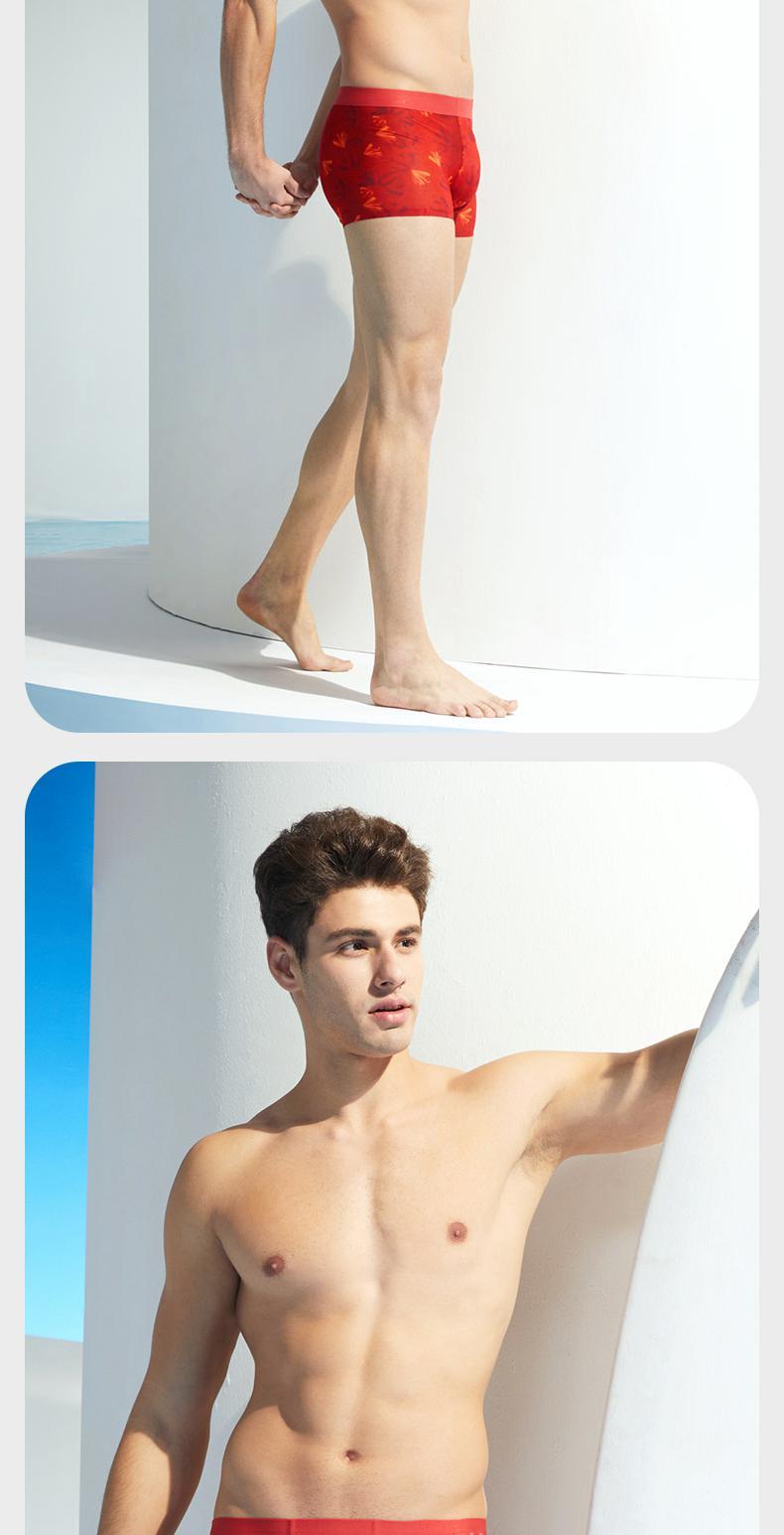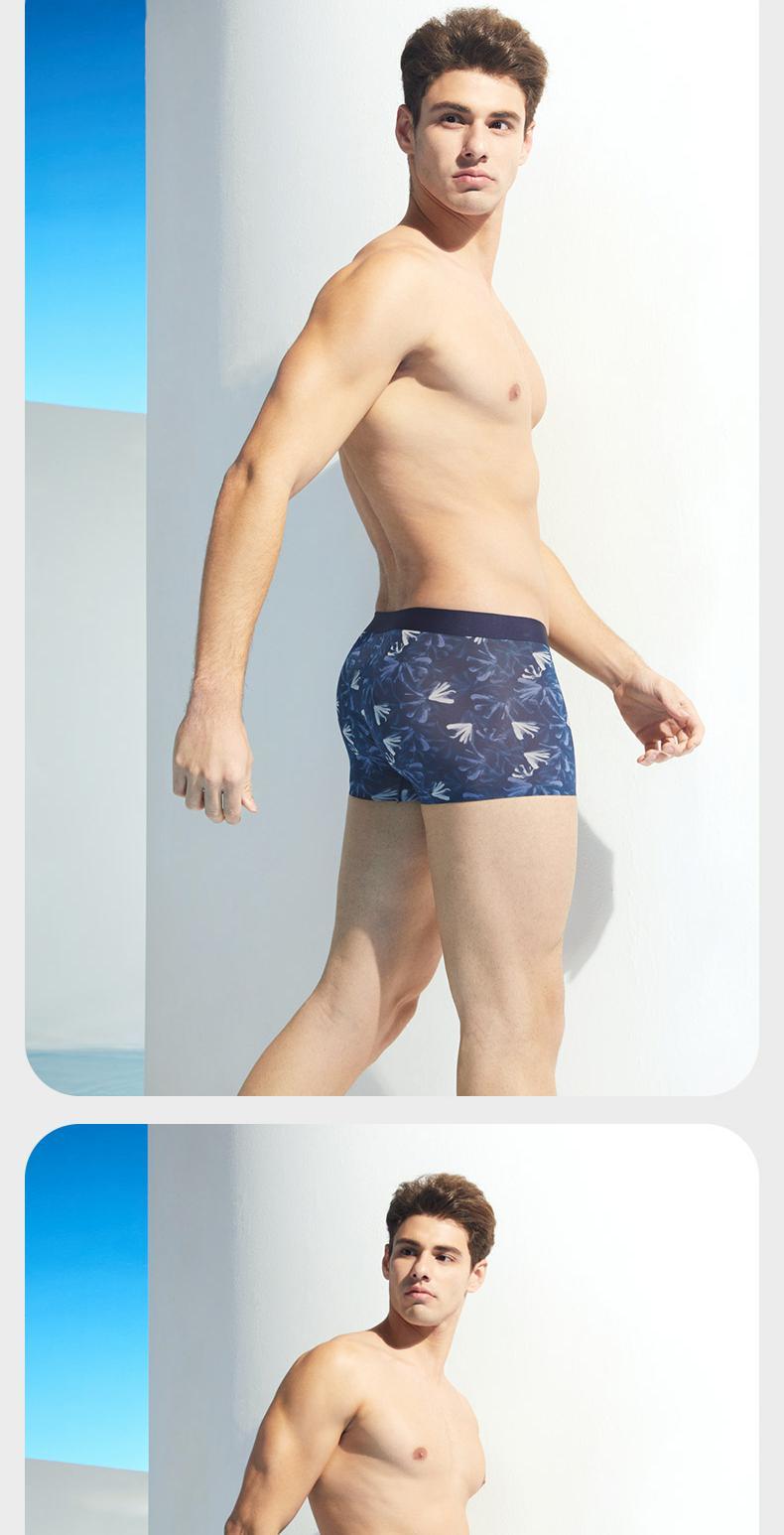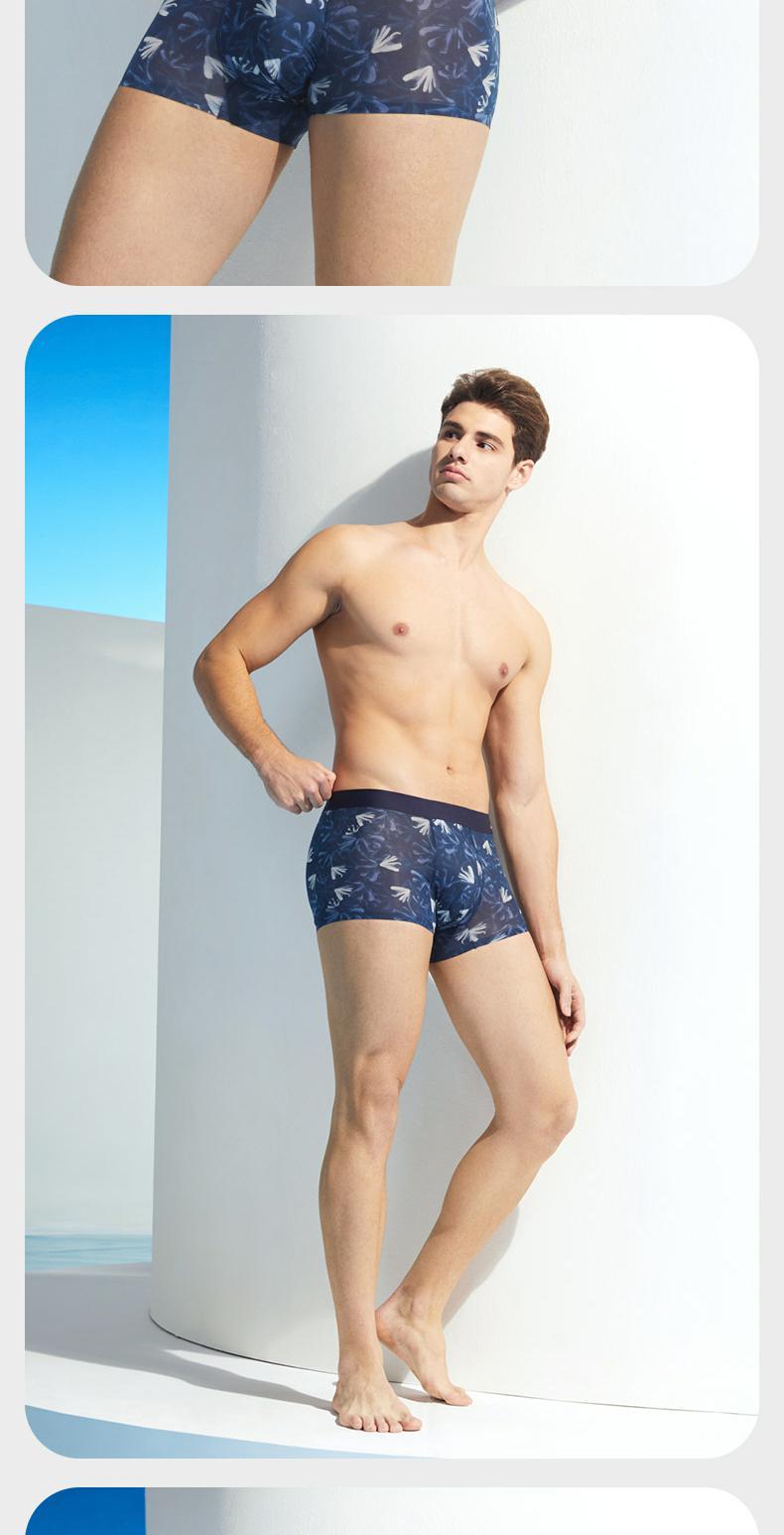 【礼盒2条装】柒牌男士内裤冰丝锦纶夏季薄款抗菌短裤数码印花无痕男生平角裤衩 124F70310