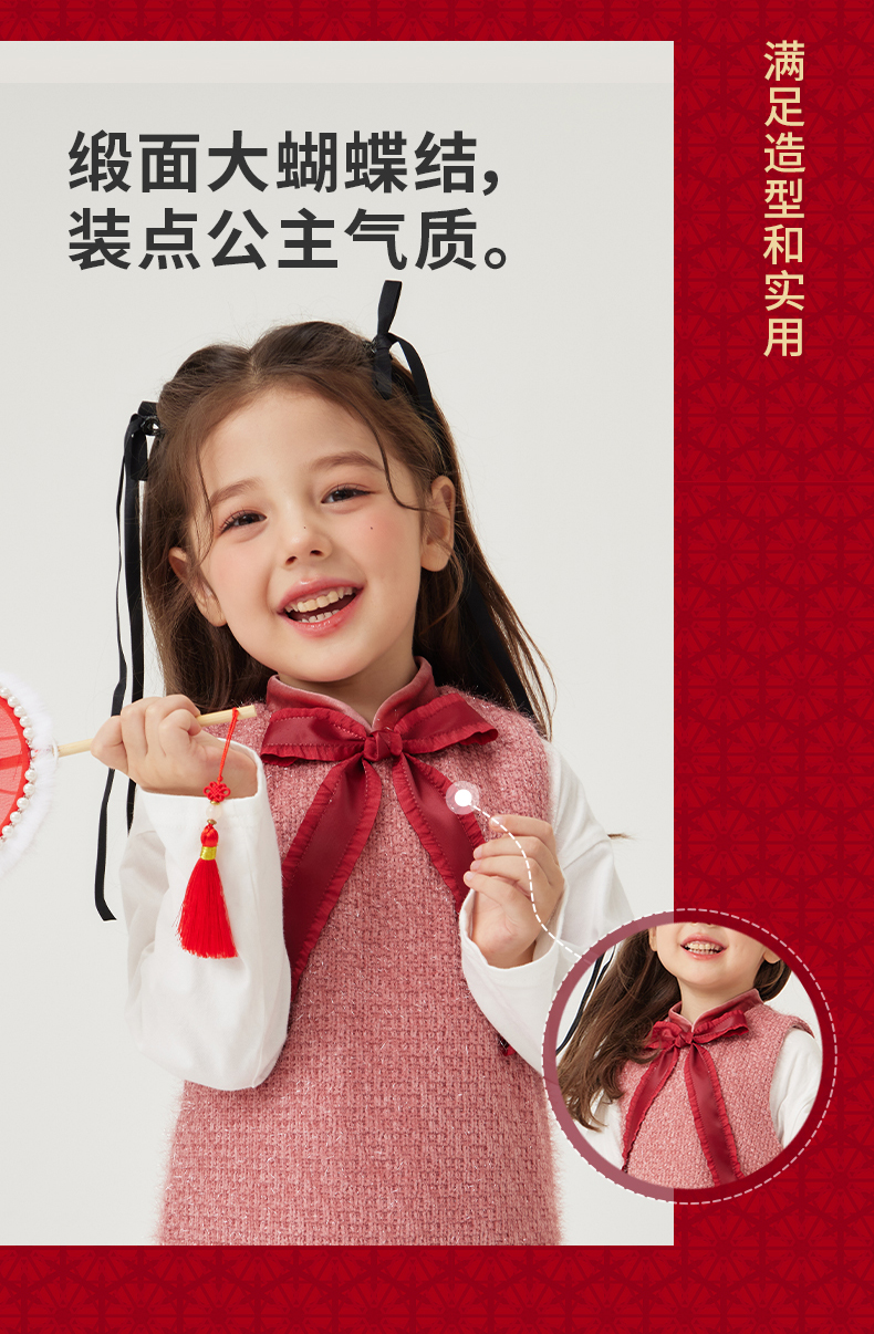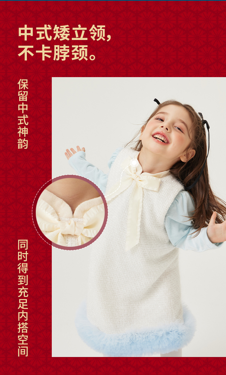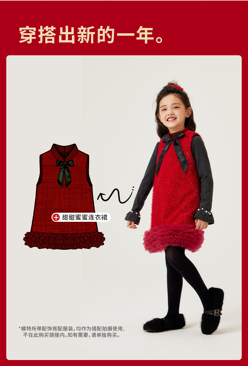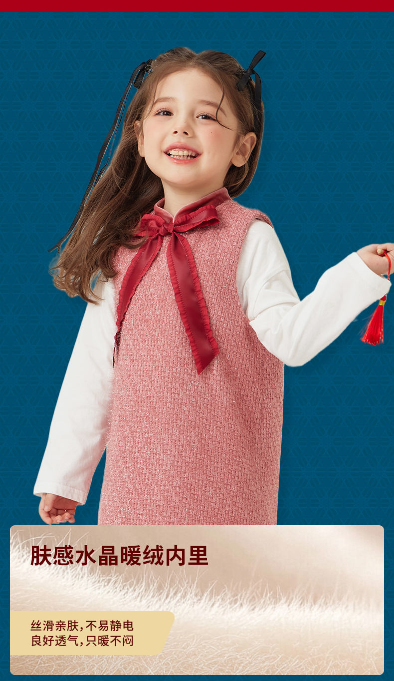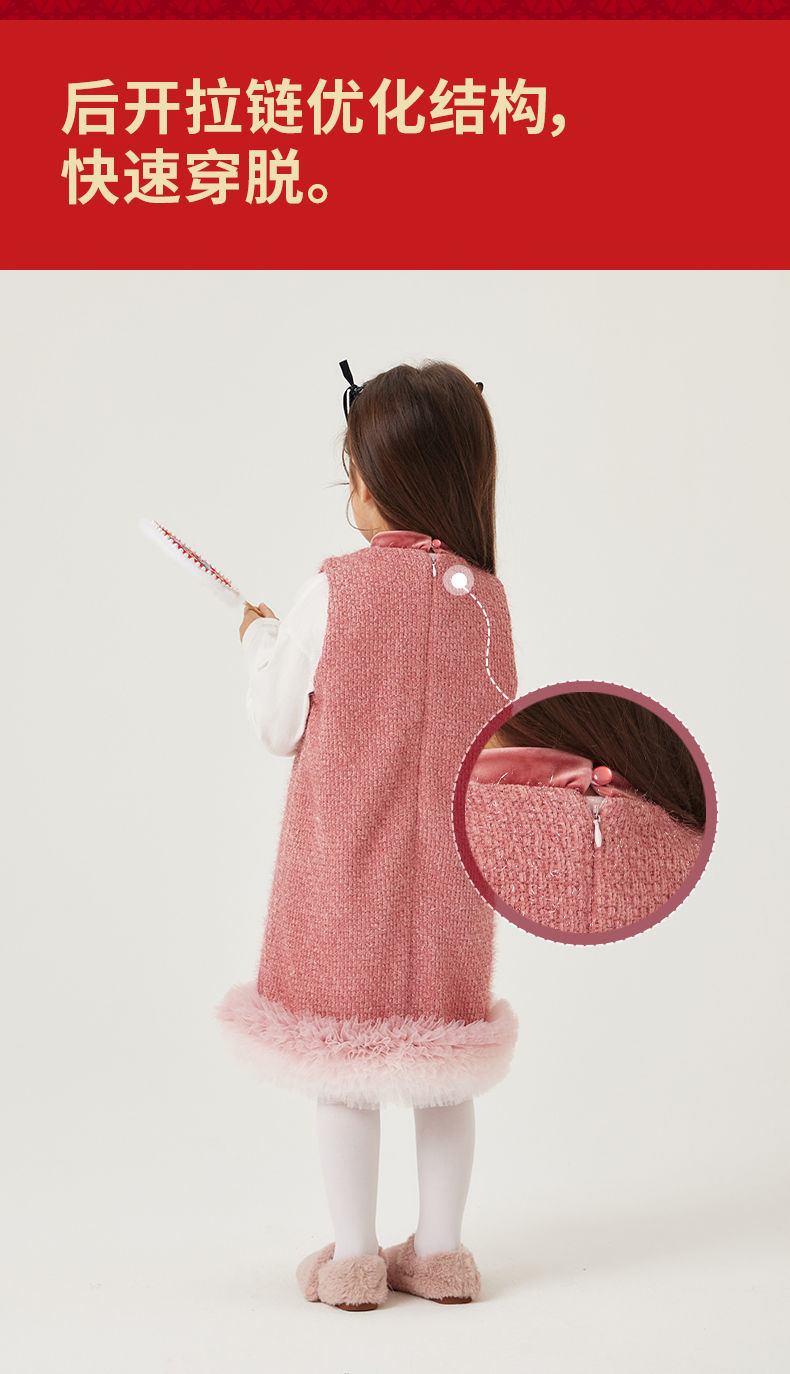 年衣童装冬季新款中式背心裙加厚宝宝新年拜年甜甜蜜蜜连衣裙