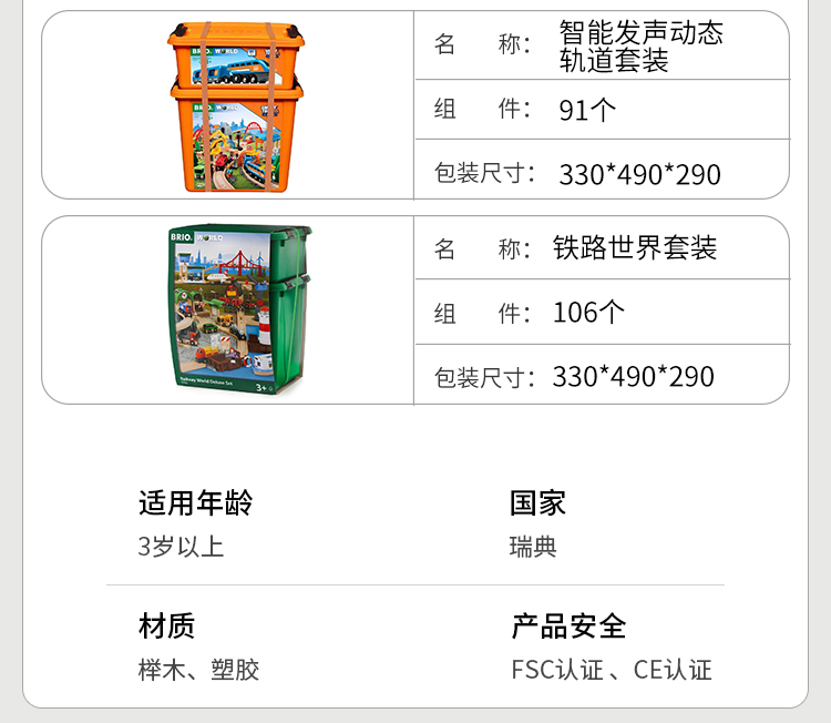 瑞典 BRIO 火车系列铁路世界豪华套装 适合年龄3岁+ 33766