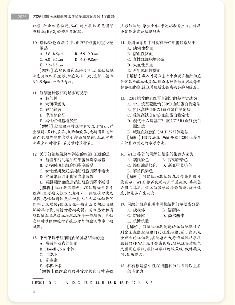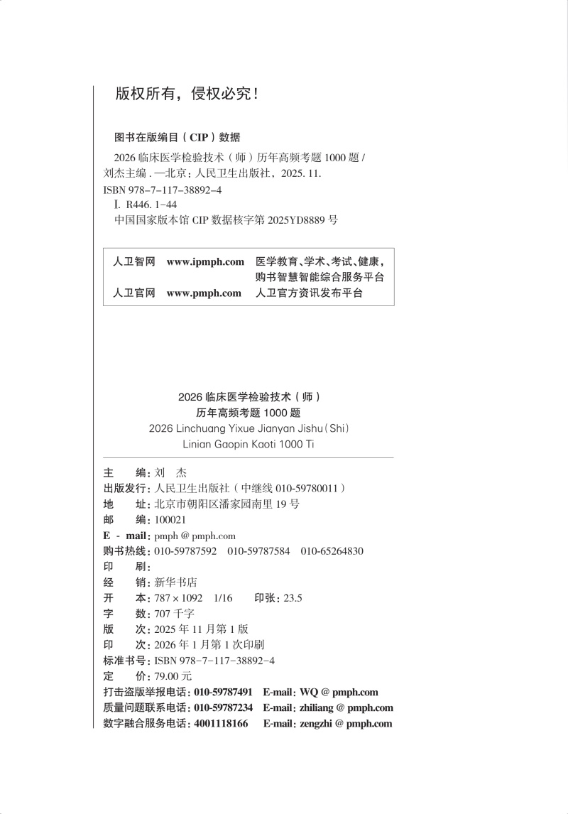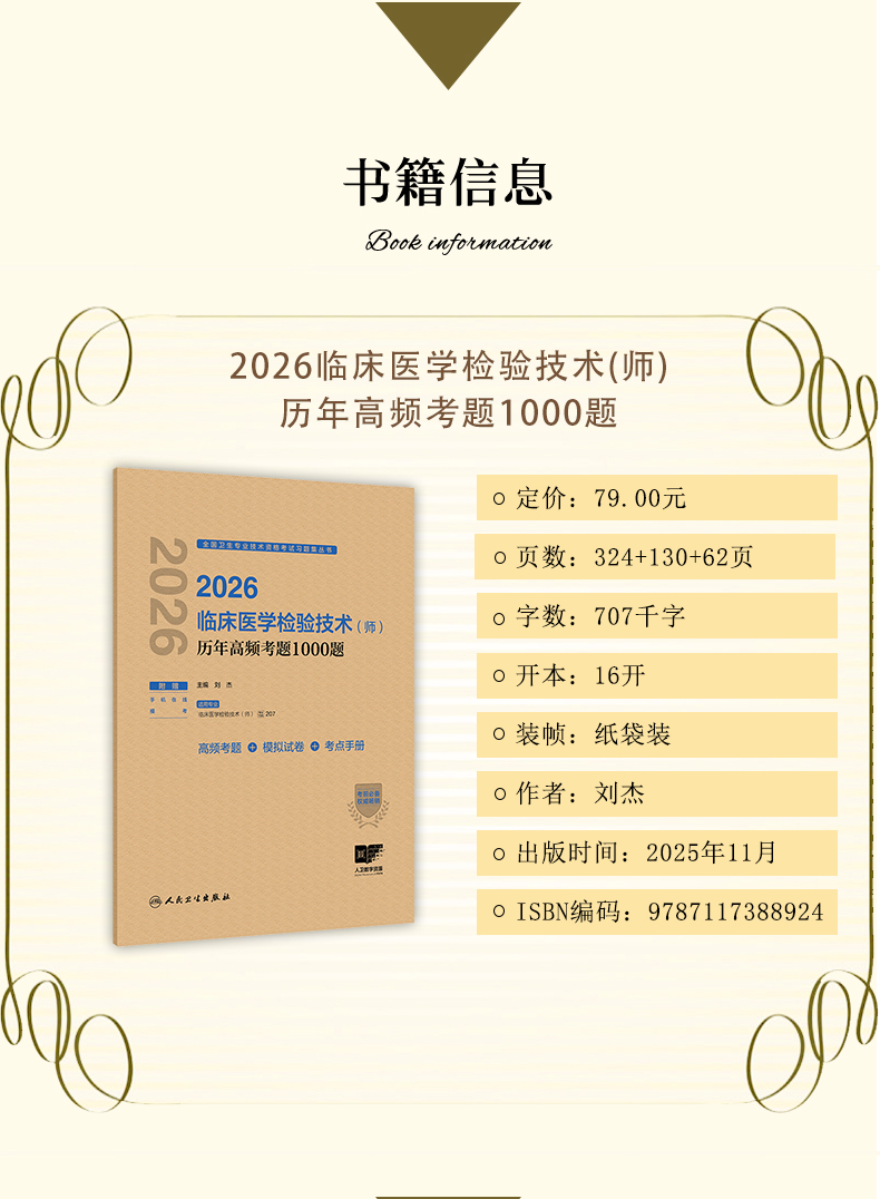 书名:2026临床医学检验技术(师)历年高频考题1000题