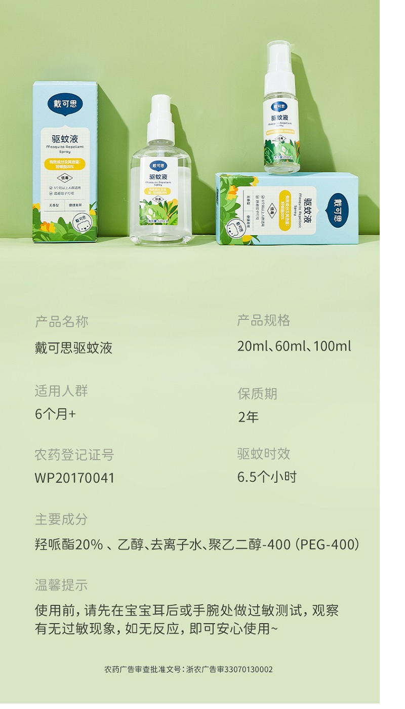 戴可思驱蚊喷雾婴儿宝宝防蚊水叮咬儿童户外便携派卡瑞丁花露水【伊藤优选200002】