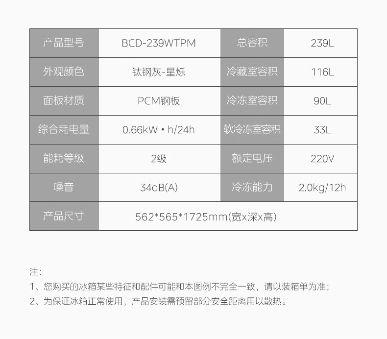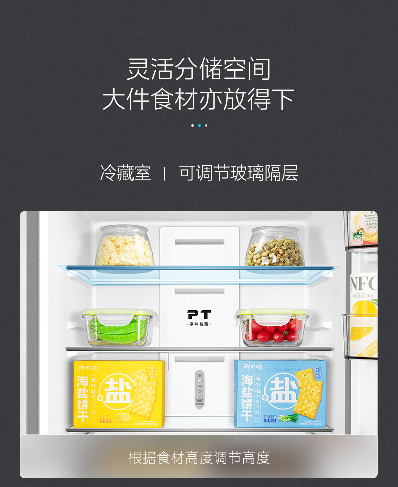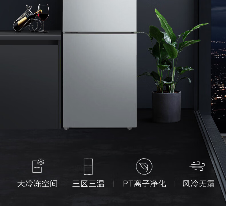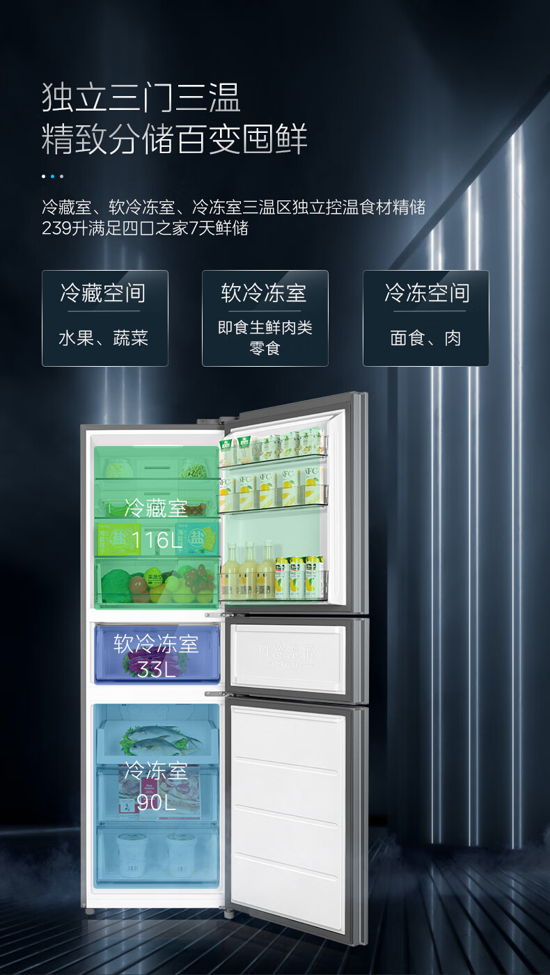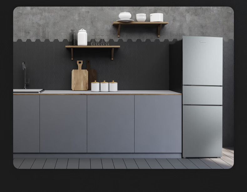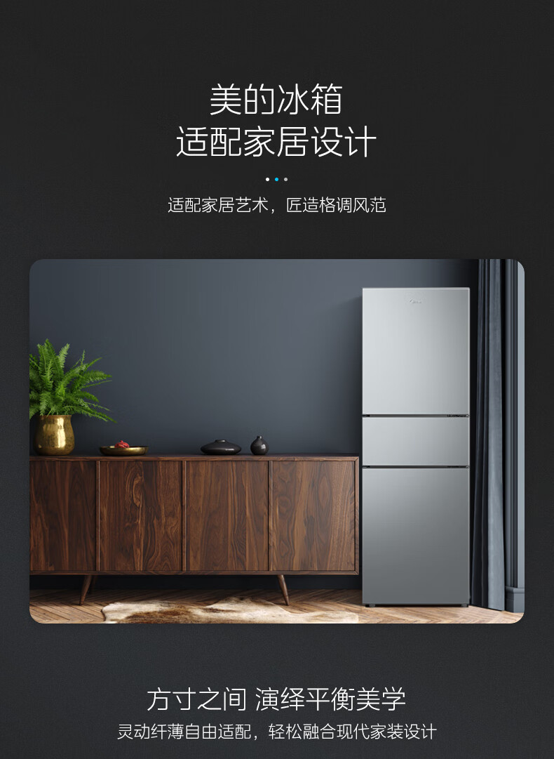 美的(Midea)三门 保鲜冰箱 风冷无霜 小体积 家用节能 低音超薄 大容量 BCD-239WTPM 钛钢灰-星烁