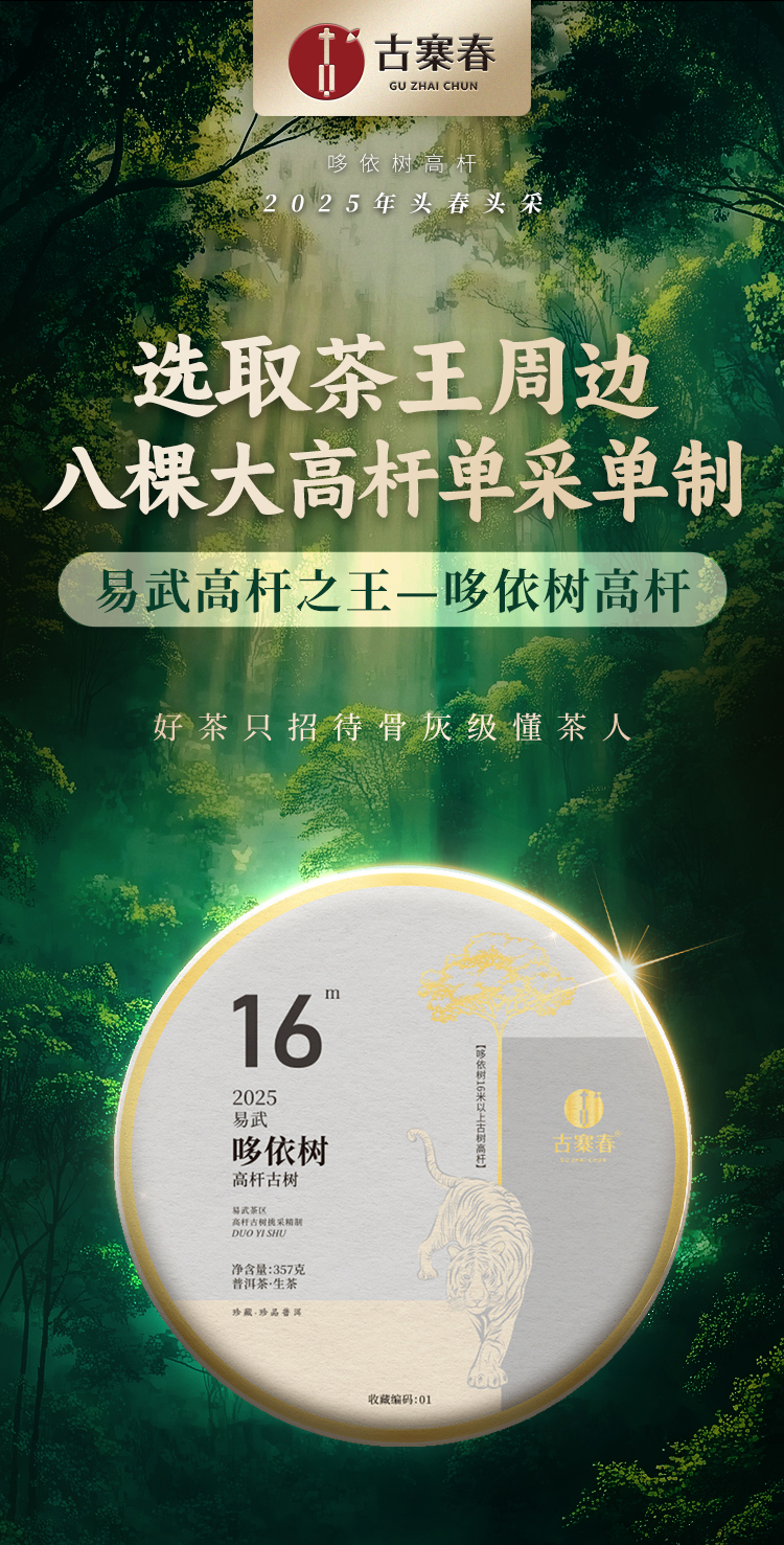 【哆依树高杆】2025年头春头采选取易武高杆之王,仅采茶王树周边八棵大高杆单采单制357g/饼