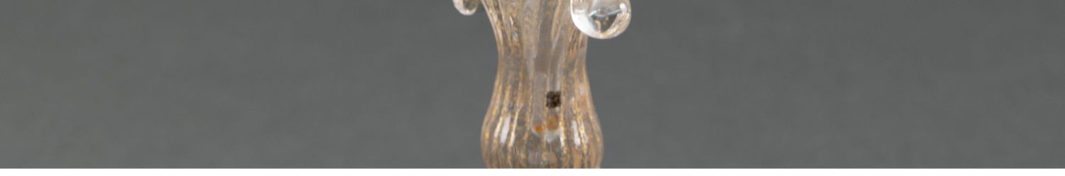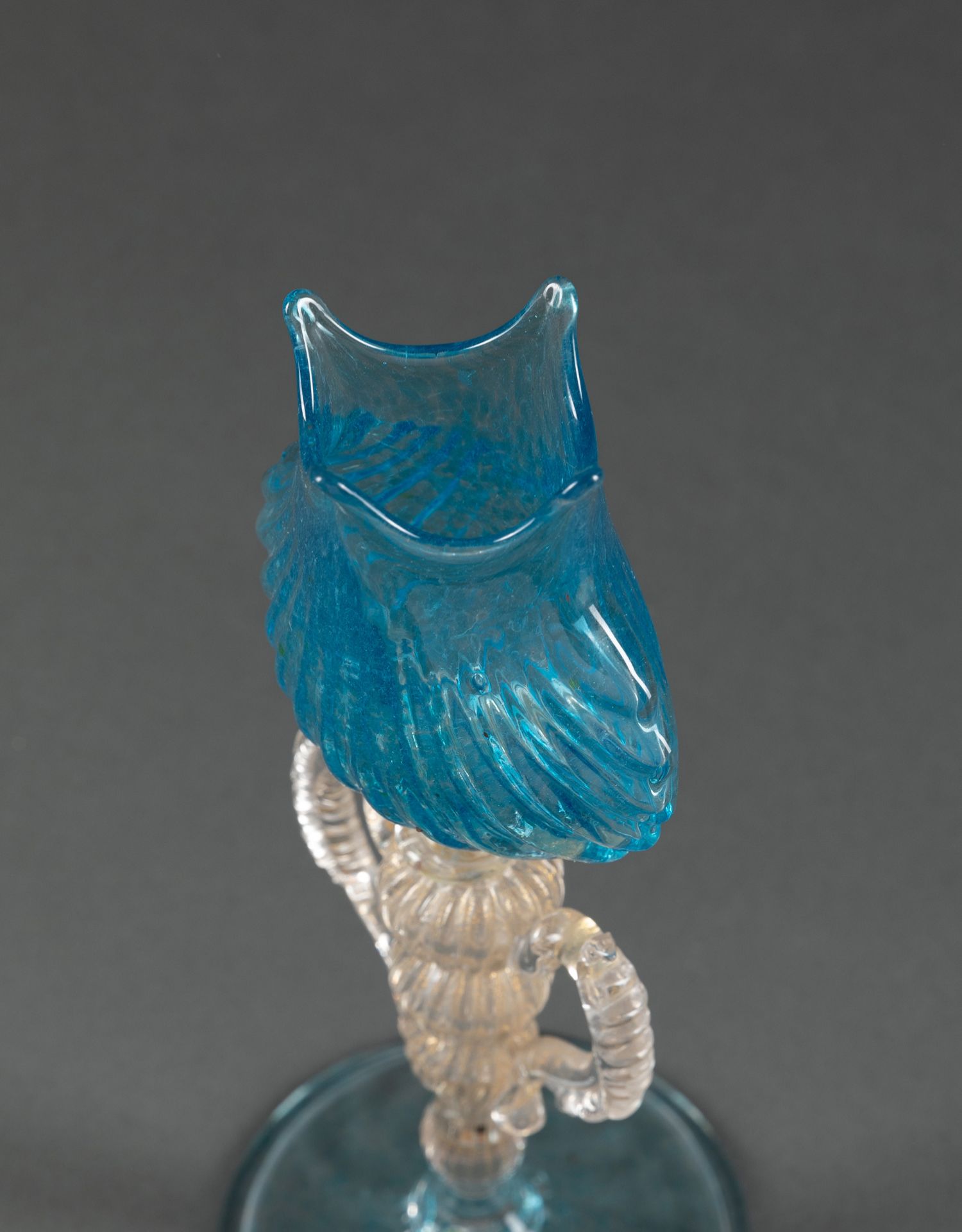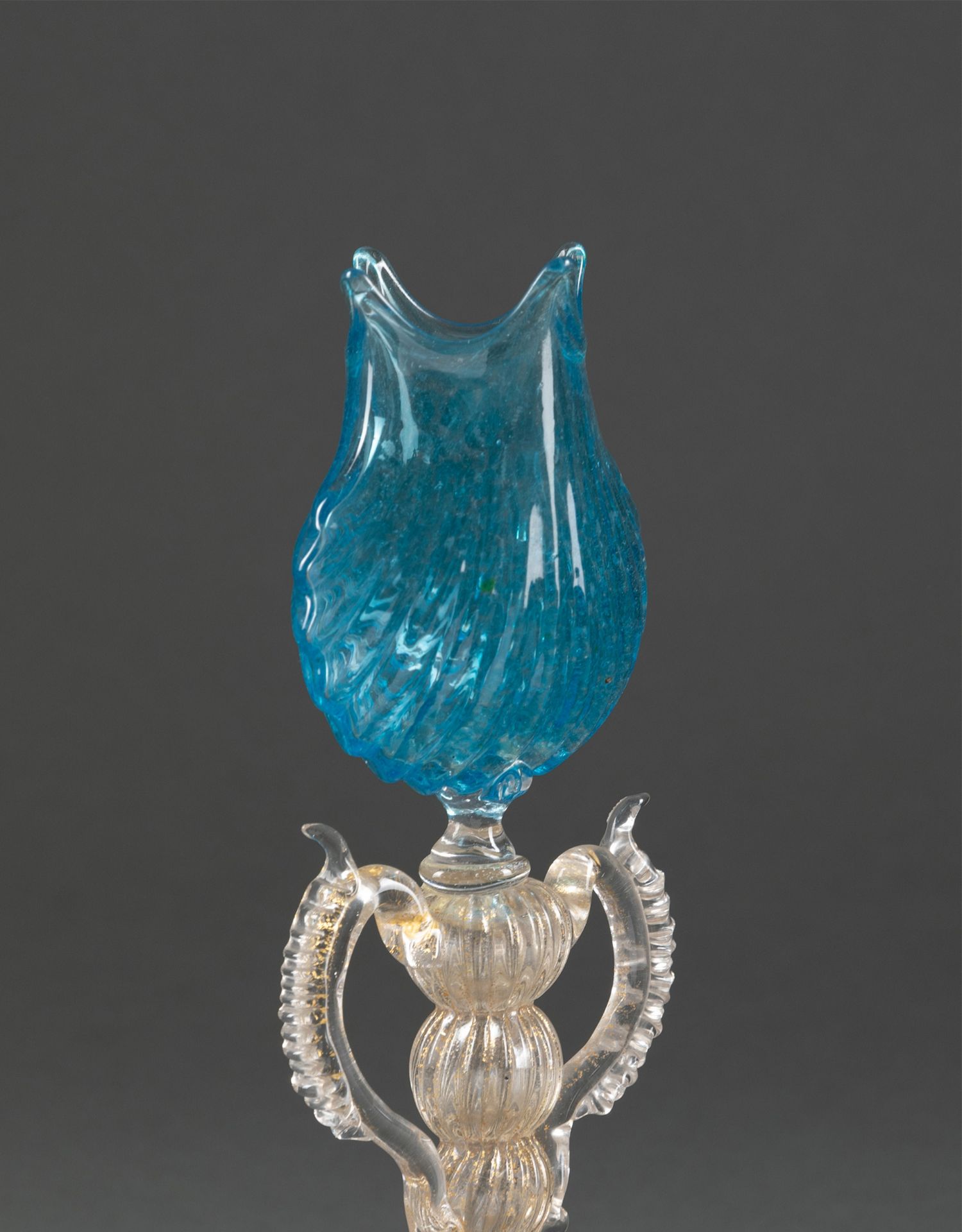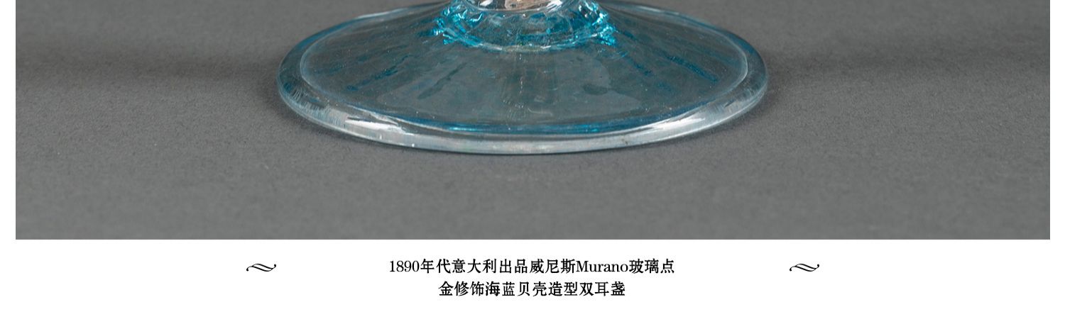 独角鹿西洋古董意大利威尼斯Murano玻璃点金饰海蓝贝壳双耳盏摆件