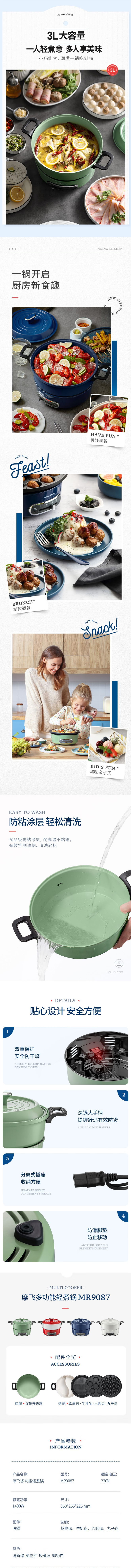 摩飞电器(13532) 多功能锅电火锅家用分体式鸳鸯火锅电炒锅烧烤肉蒸煮炒煎电煮锅MR9087