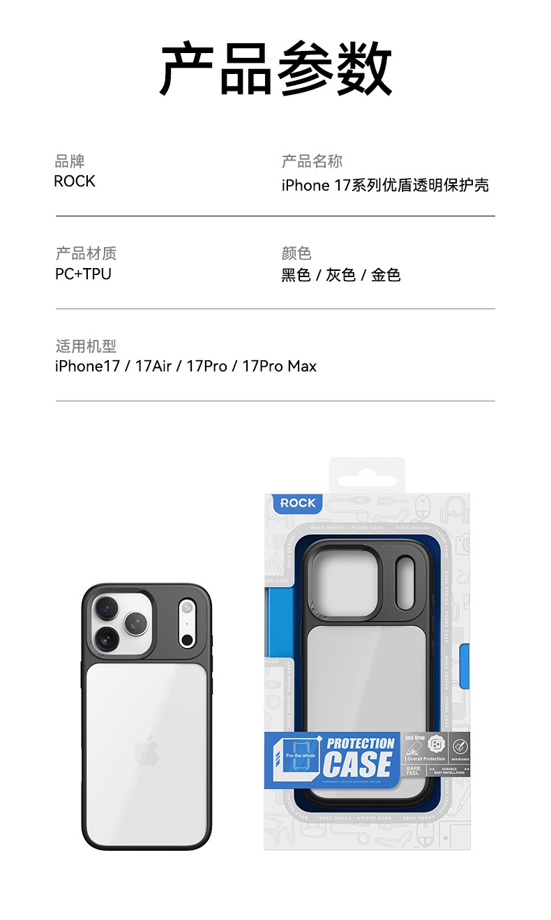 ROCK iPhone 17 优盾透明保护壳