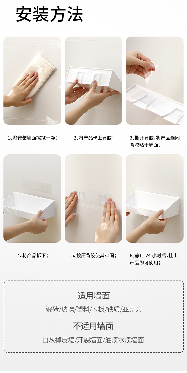 FaSoLa白色浴室洗漱台化妆品置物架镜前壁挂式洗手间墙面收纳架子