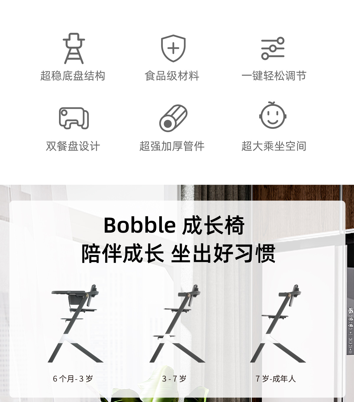 AVOVA儿童成长椅家用儿童餐椅多功能调节Bobble抱抱椅