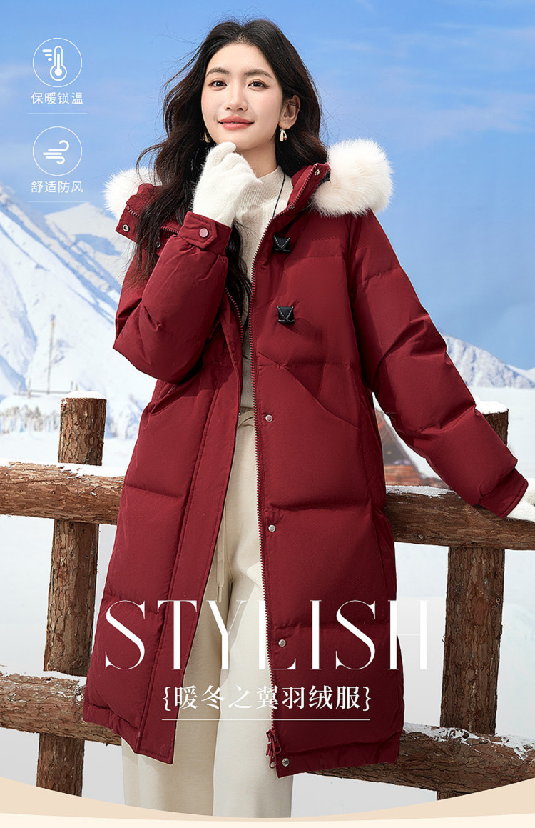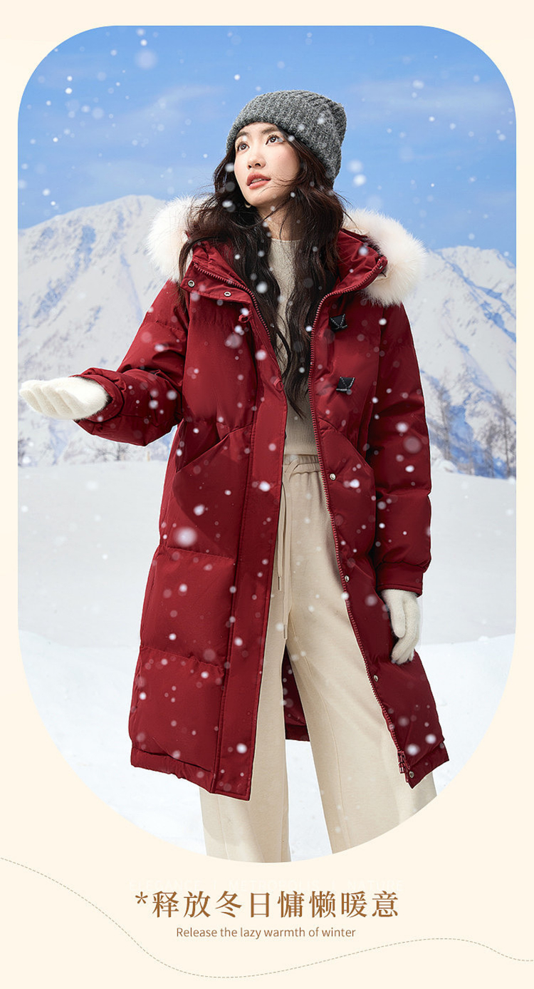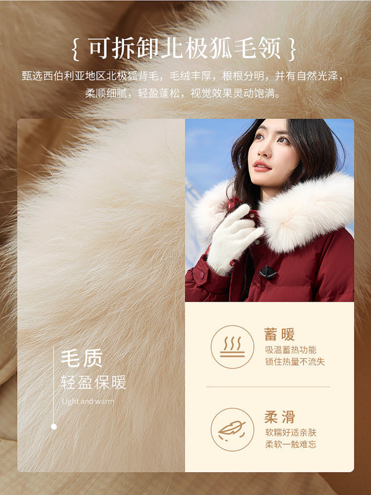 【12/10新品4.5折】熙世界超好看圣诞红色羽绒服女款2025冬季可拆卸狐狸毛领长款外套
