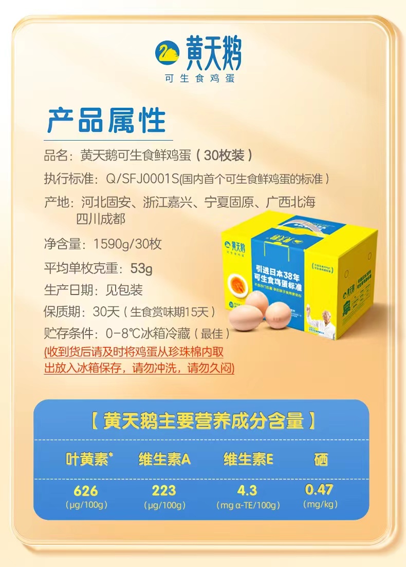 黄天鹅可生食无菌蛋 无抗生素无激素单枚50G+甄选装 破损赔付30枚