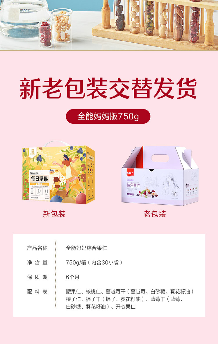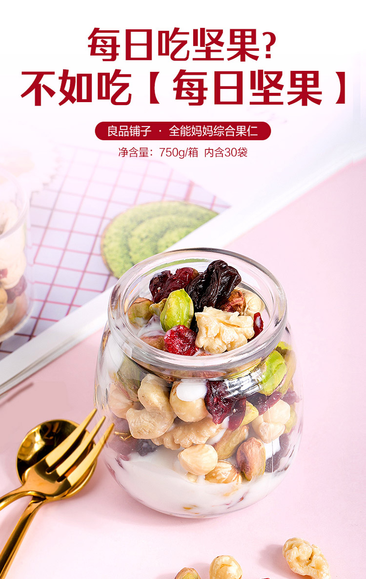 良品铺子综合果仁 每日坚果混合干果孕妇零食大礼包礼盒礼品核桃开心果腰果葡萄干750g*1