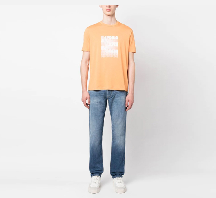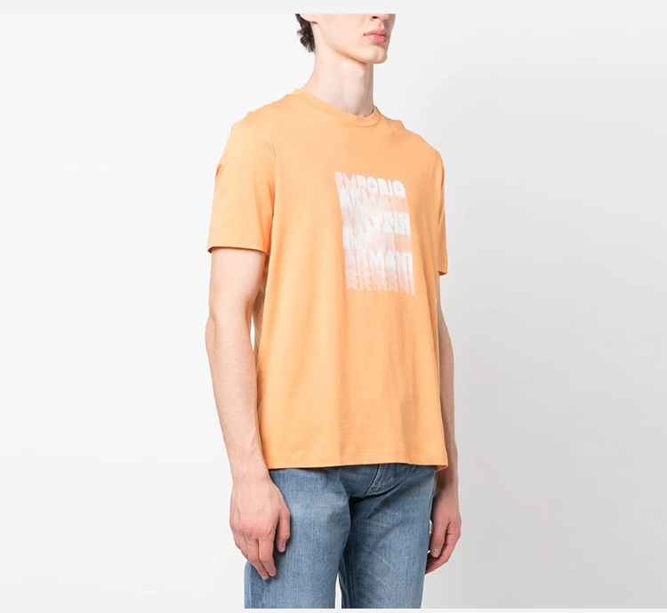 EMPORIO ARMANI 阿玛尼 男士棉质 80 年代效果徽标印花比马平纹针织圆领短袖T恤 橘色 3R1TDE 1JPZZ 0243