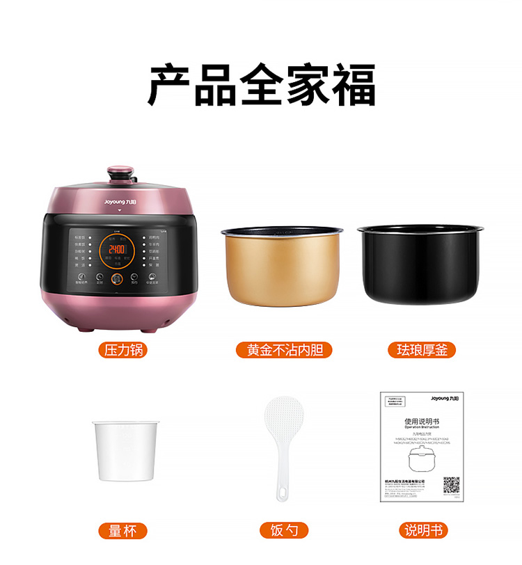 九阳(Joyoung)电压力锅5L家用压力煲电高压锅八段调压 口感可调 一锅双胆 JYY-50C3 (邓伦推荐)