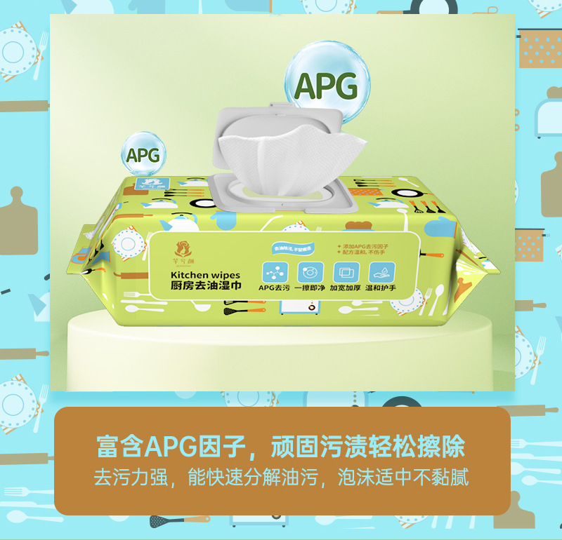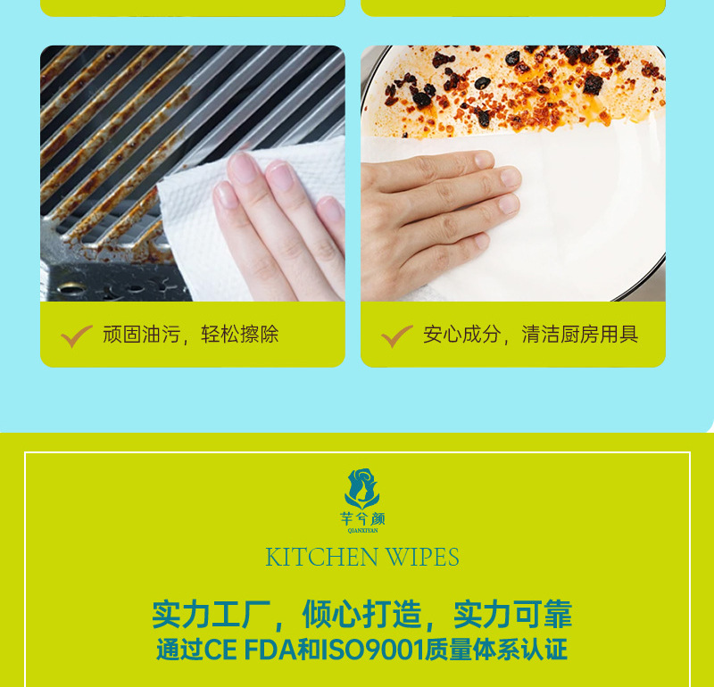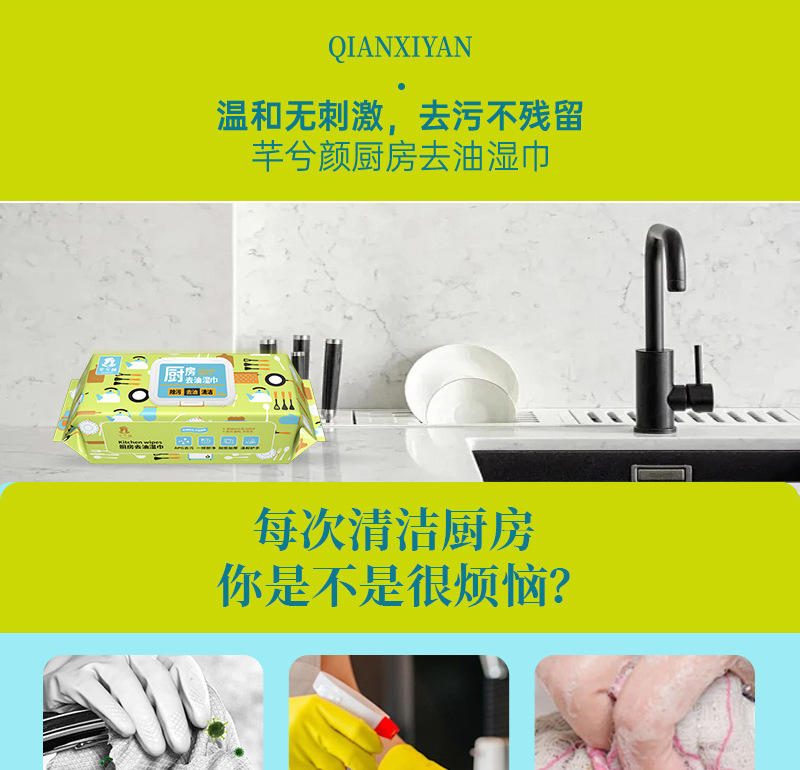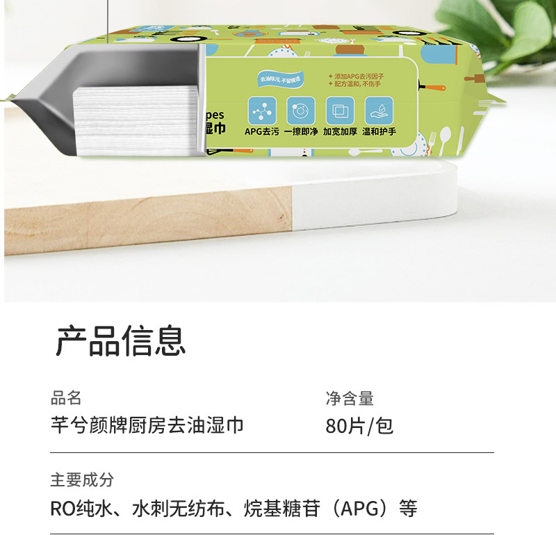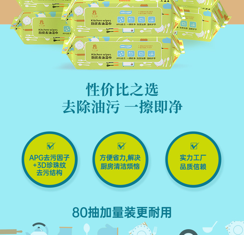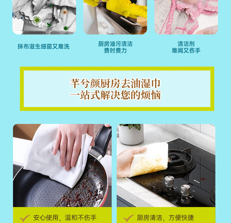 「9.9元包邮!加大加厚款」芊兮颜厨房去油湿巾 去污居家日用油烟机清洁用品一次性抹布加大加厚80抽