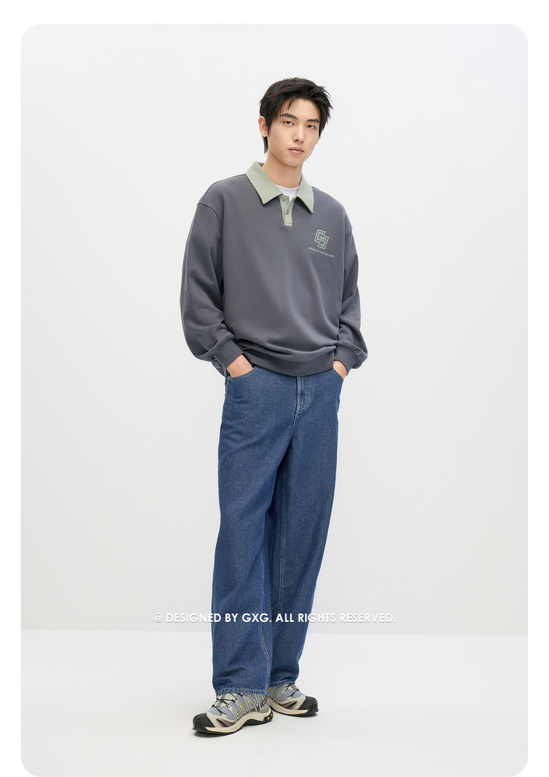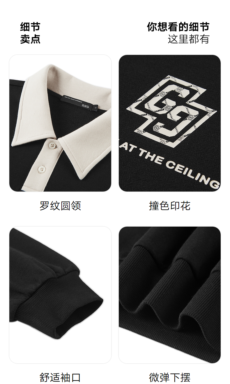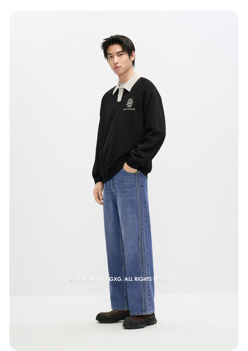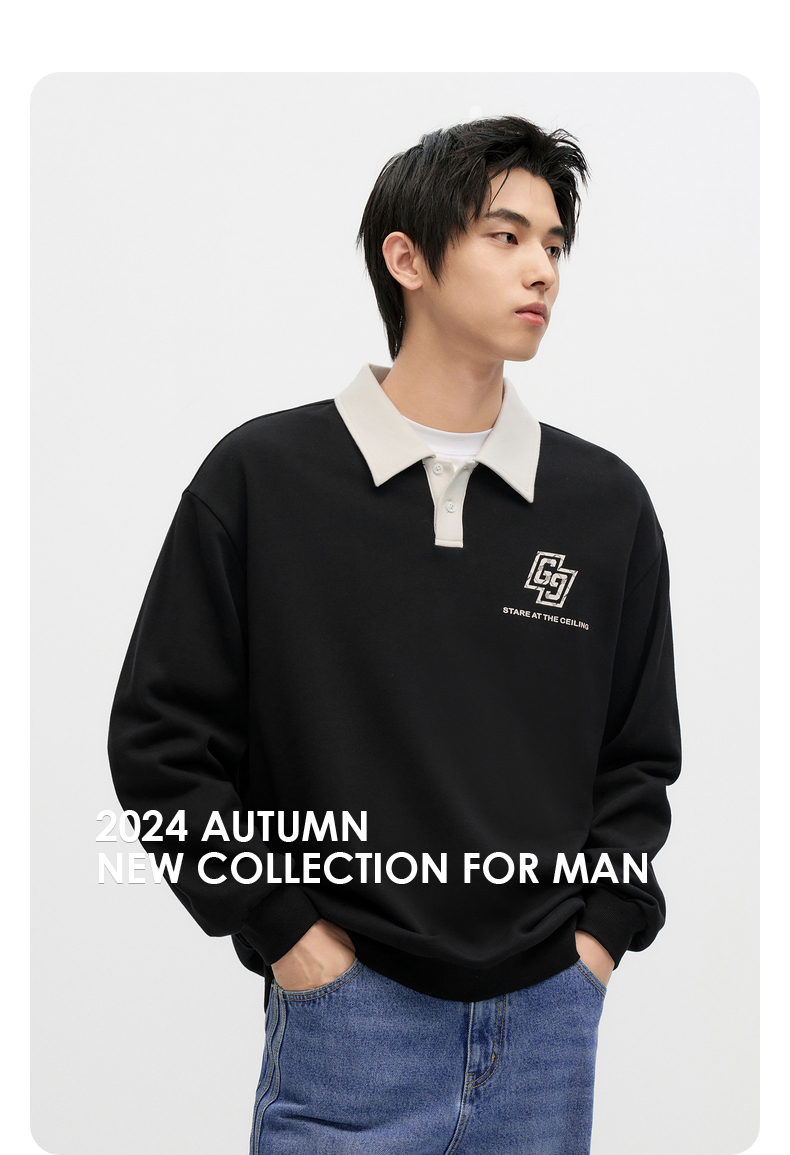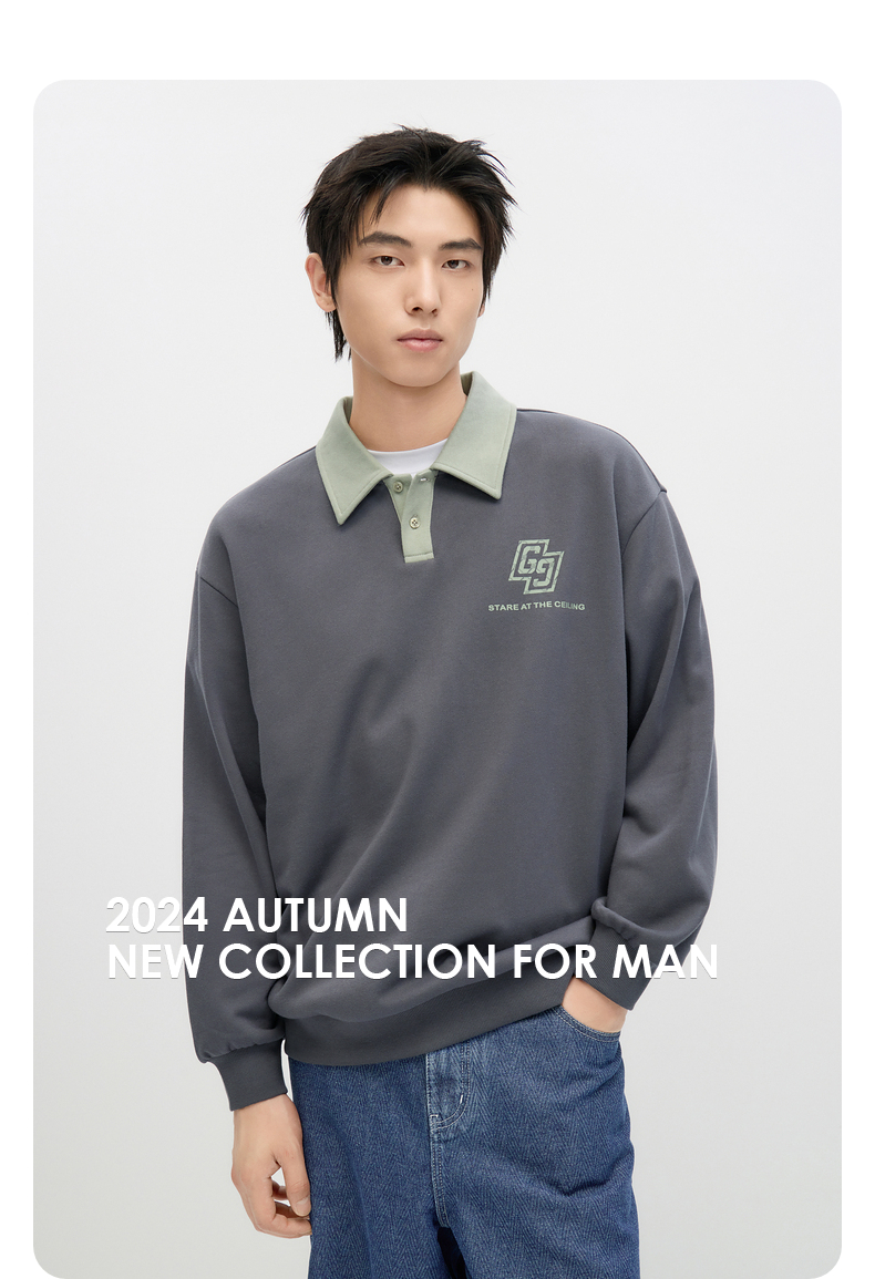 GXG男装 2024年秋季热卖GXG男士宽松撞色翻领印花时尚休闲卫衣男
