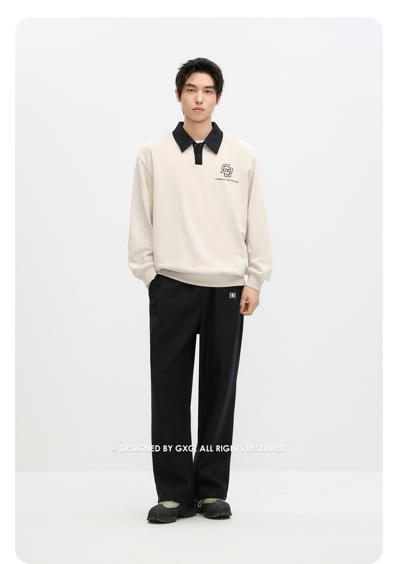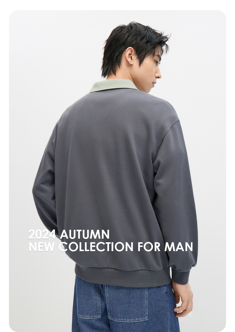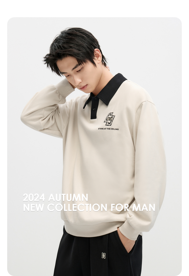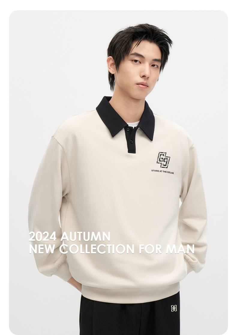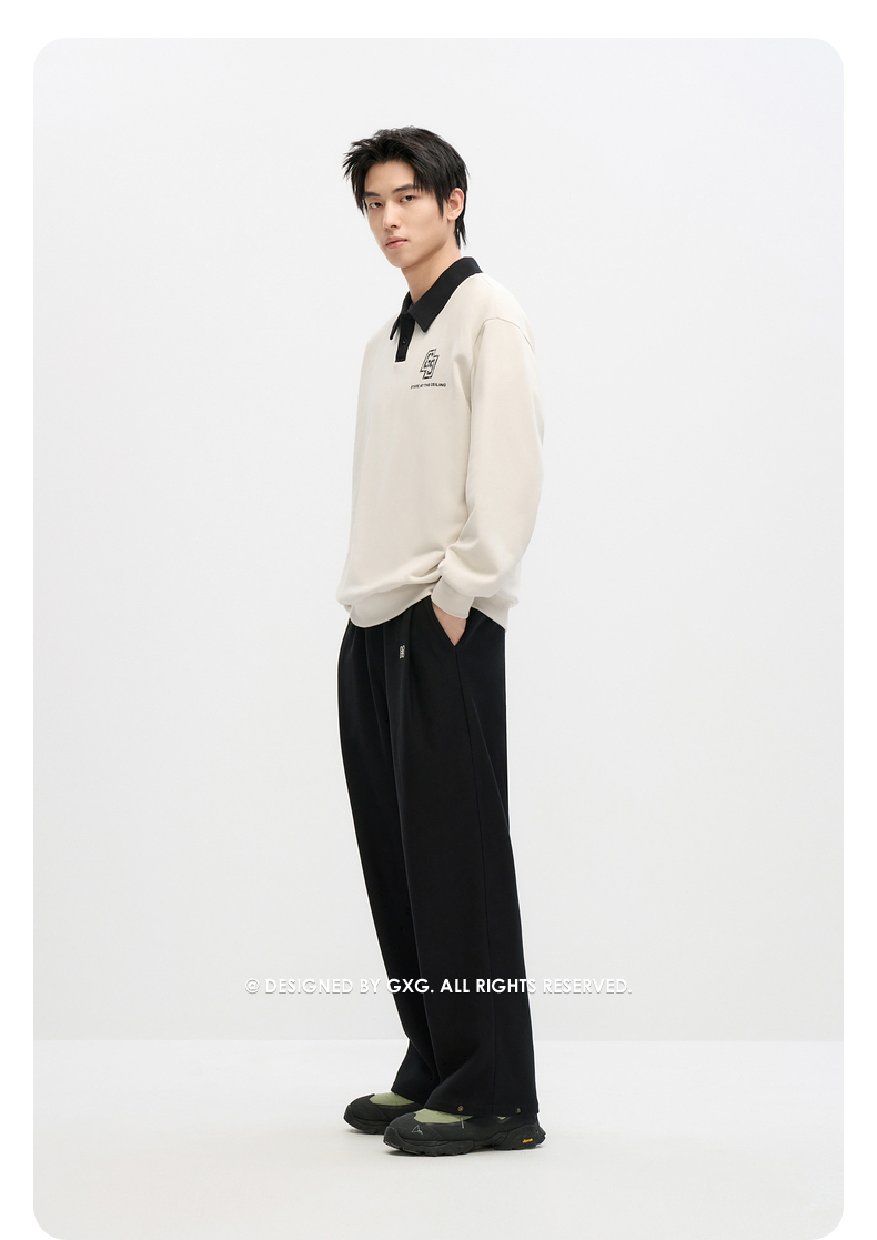 GXG男装 2024年秋季热卖GXG男士宽松撞色翻领印花时尚休闲卫衣男