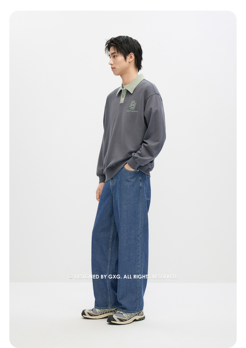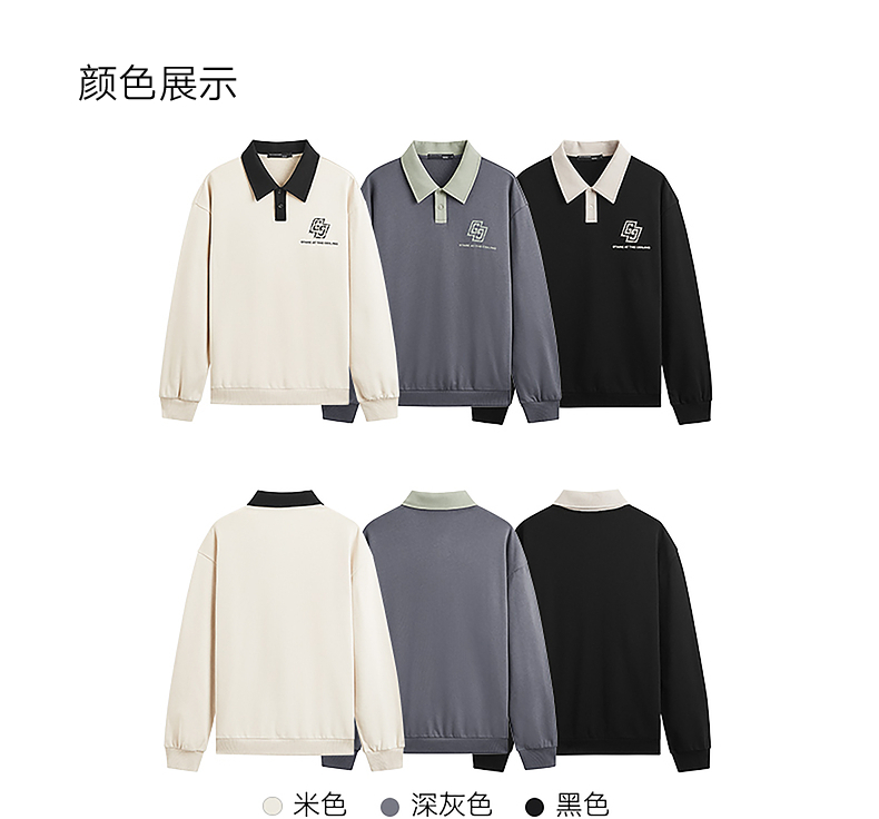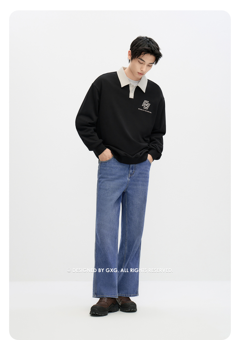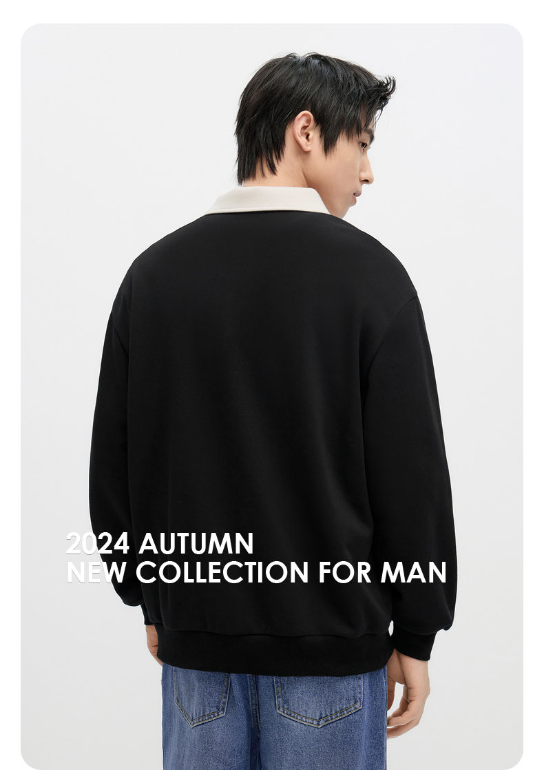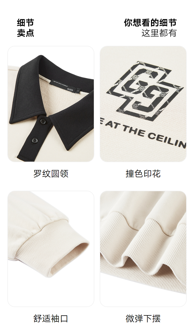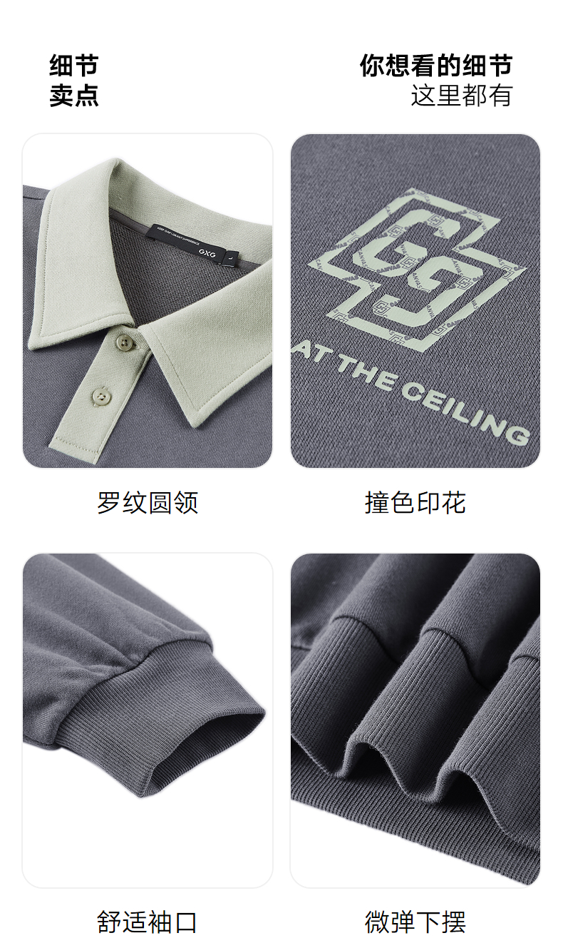 GXG男装 2024年秋季热卖GXG男士宽松撞色翻领印花时尚休闲卫衣男