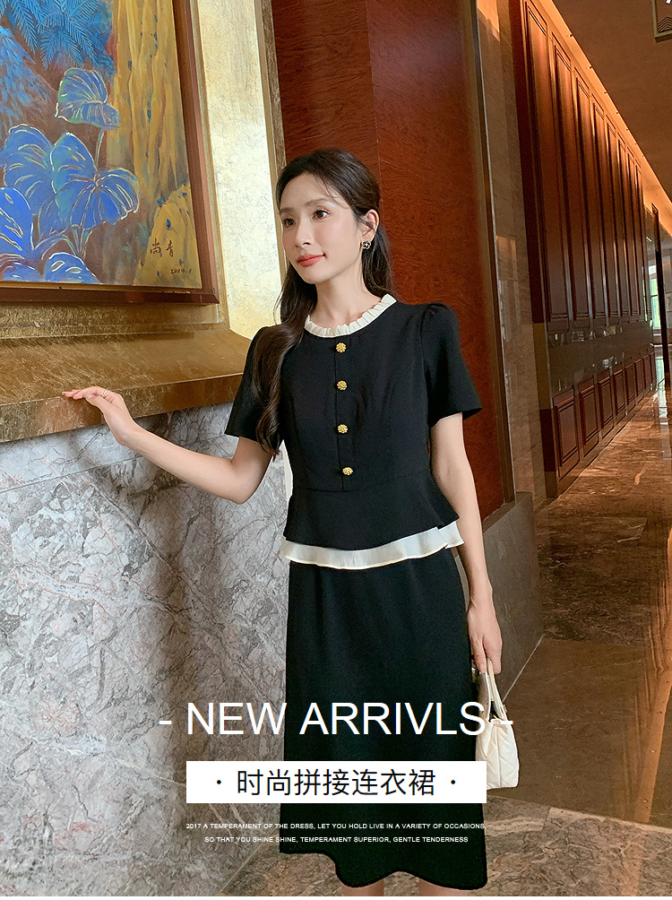 奢姿大码女装2025夏季气质撞色圆领连衣裙胖妹妹时尚减龄拼接裙子9952853310【1】