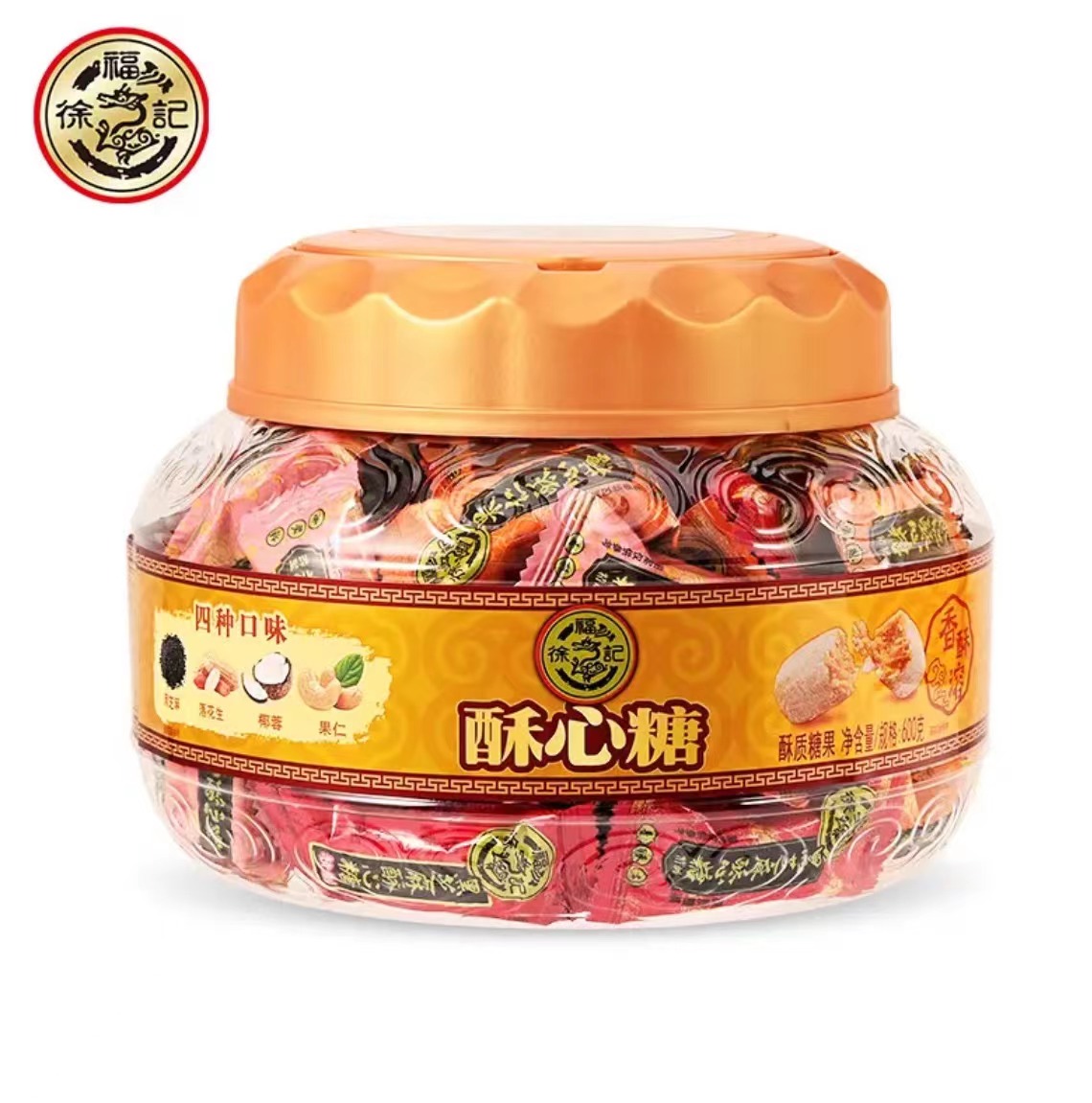 ★徐福记酥心糖甄选多种果仁,火候地道熬制。层层折叠,酥脆可口。酥心糖也寓意酥心如意,事事如意