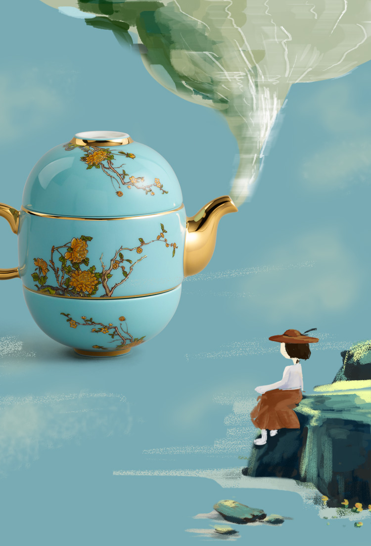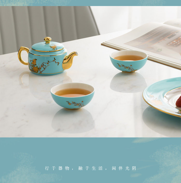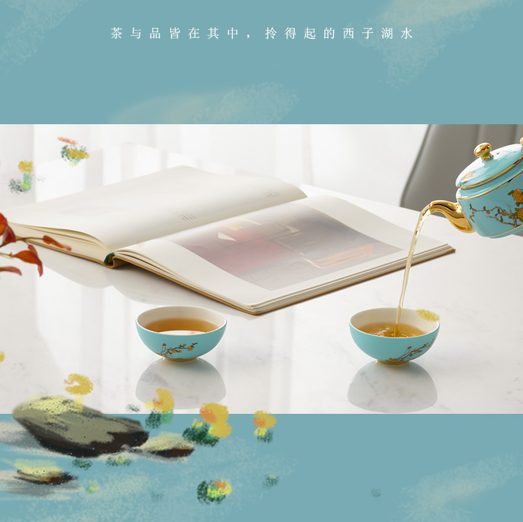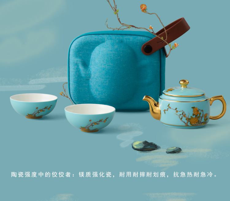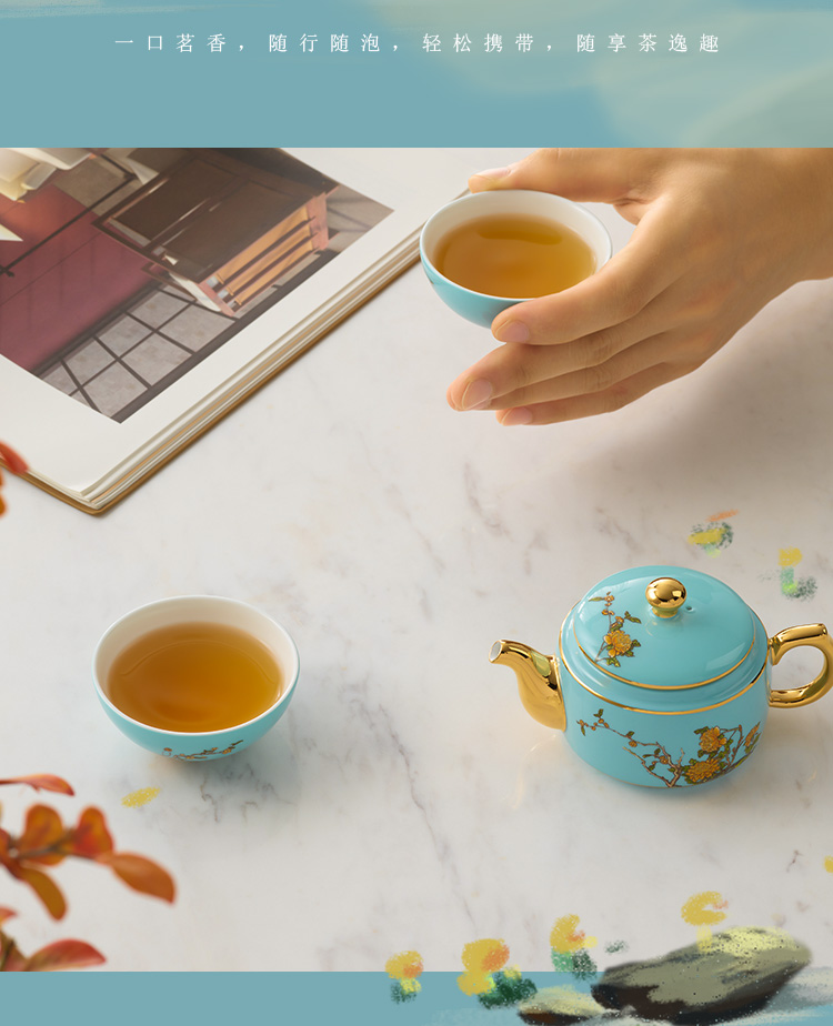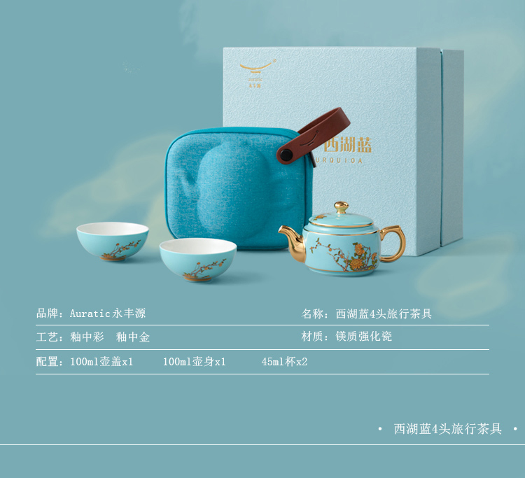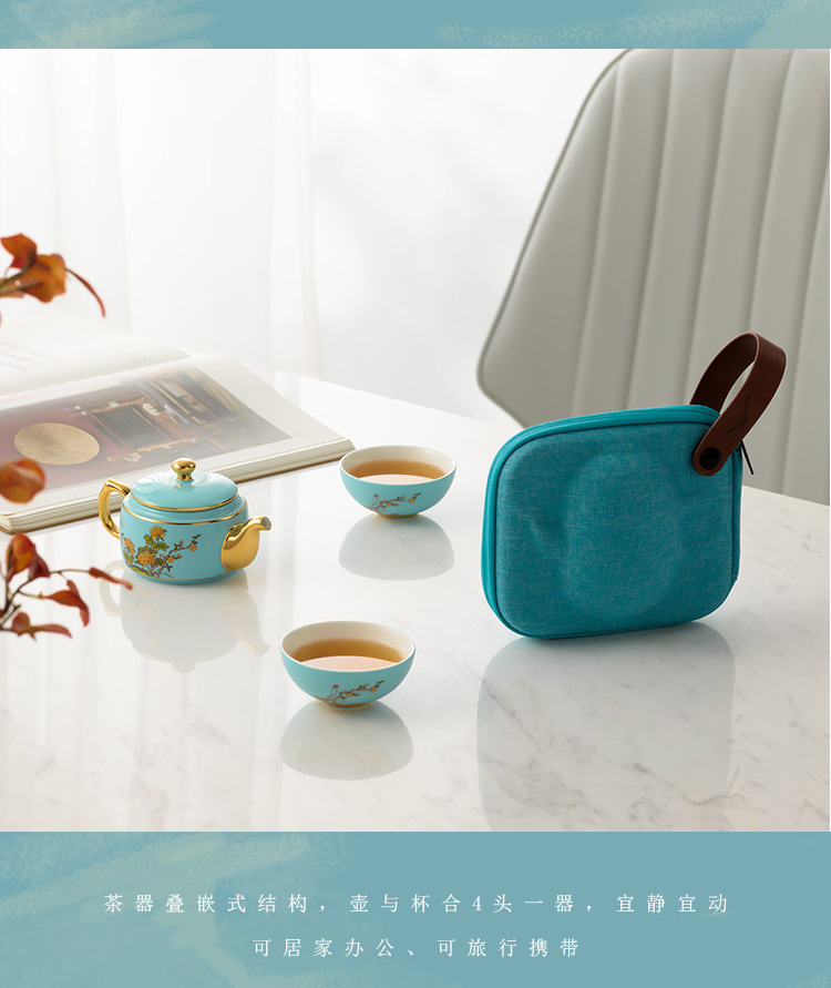 【国瓷·永丰源】夫人瓷西湖蓝4头旅行茶具 便携式泡茶套装