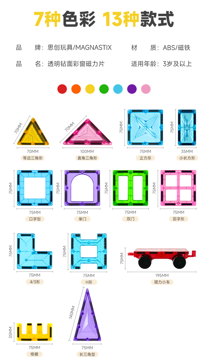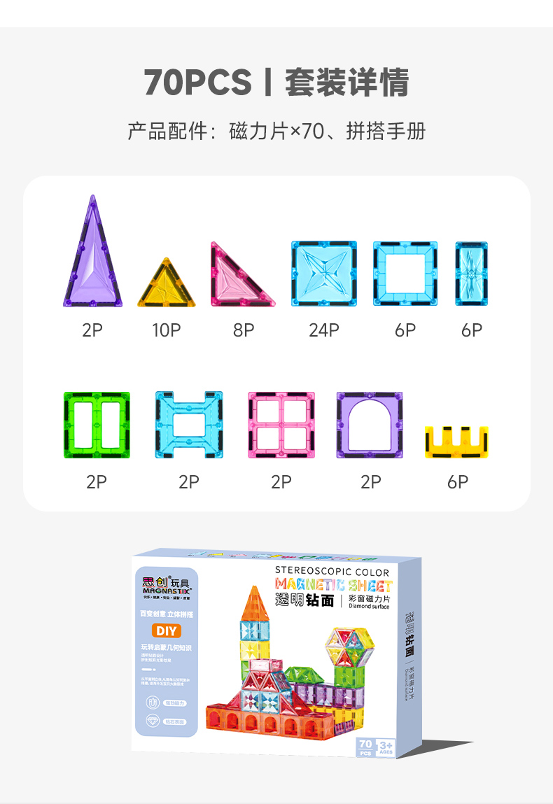 *【思创】钻石彩窗磁力片 70片(非质量问题退货需扣除发货运费,介意慎拍!)