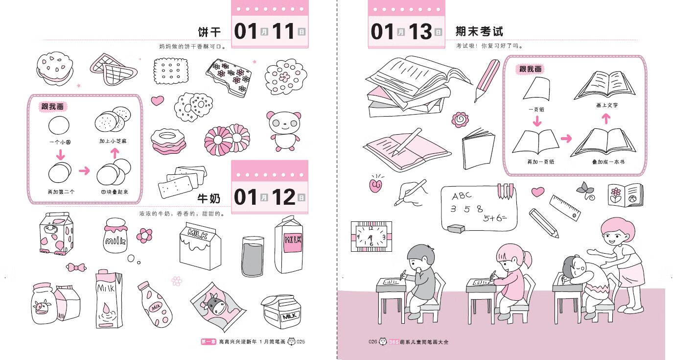 《萌系简笔画2:365手账简笔画大全》(走心的手账简笔画,表情包、小图案、边框、字体,应有尽有!)