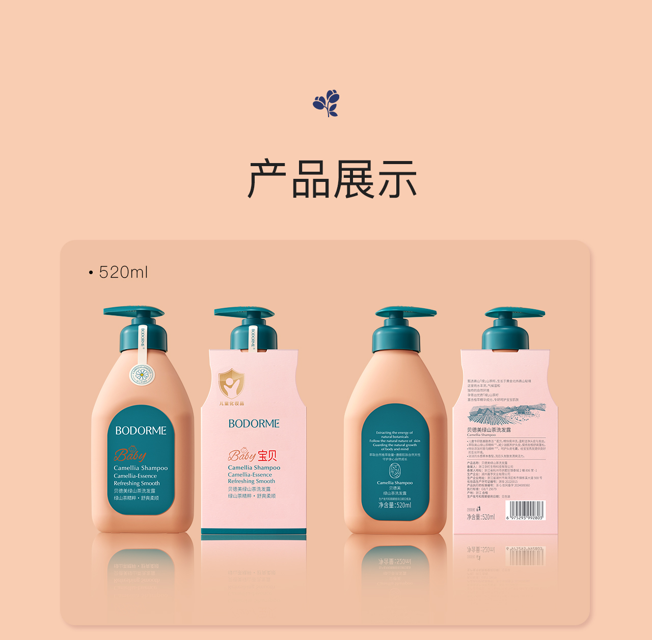 贝德美儿童洗发水专用女孩宝宝中大童女童氨基酸洗头膏顺滑洗发露