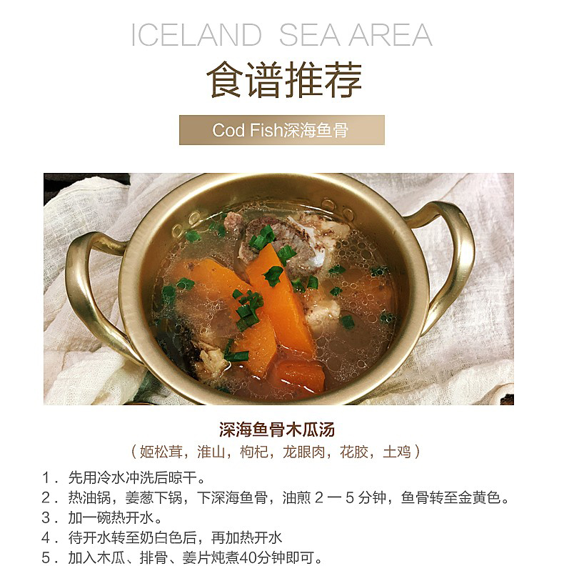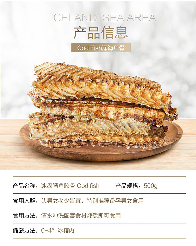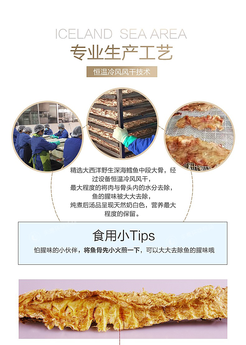 【冰岛鳕鱼骨】来自北极深海鳕鱼骨,天然补钙更健康!鳕鱼骨含有丰富的营养物质,钙质丰富,胶原多!用鳕鱼骨来煲汤、熬粥,对人体也有很大的滋补帮助!【QJ-J仓】