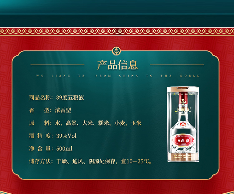 【整箱购】39度五粮液新版 白酒 500ml*6