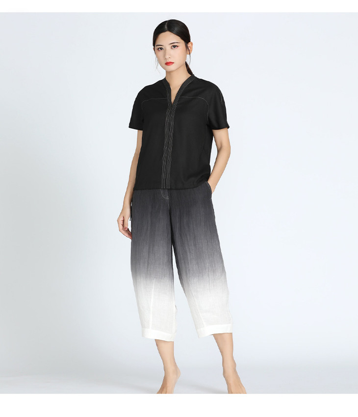 TANGY Collection天意丝麻绉吊染九分裤