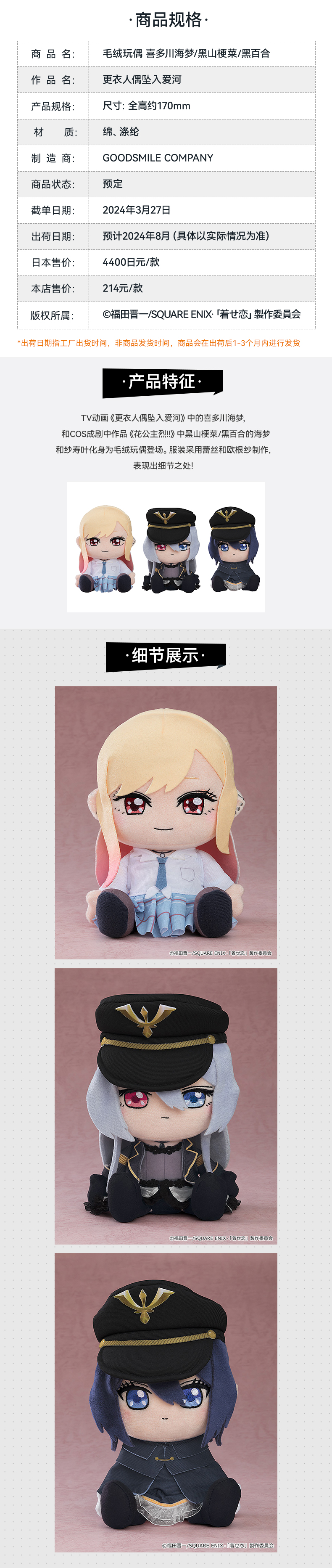 【GSC现货】毛绒玩偶 喜多川海梦/黑山梗菜/黑百合 更衣人偶坠入爱河