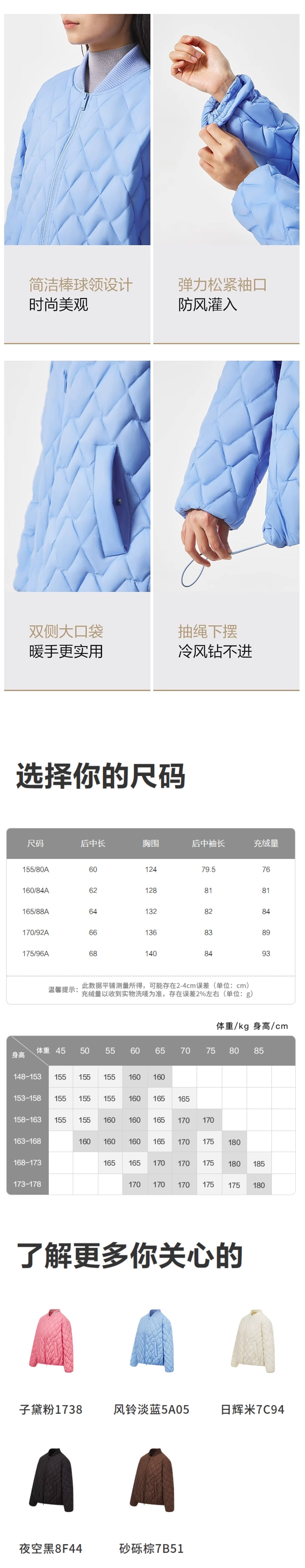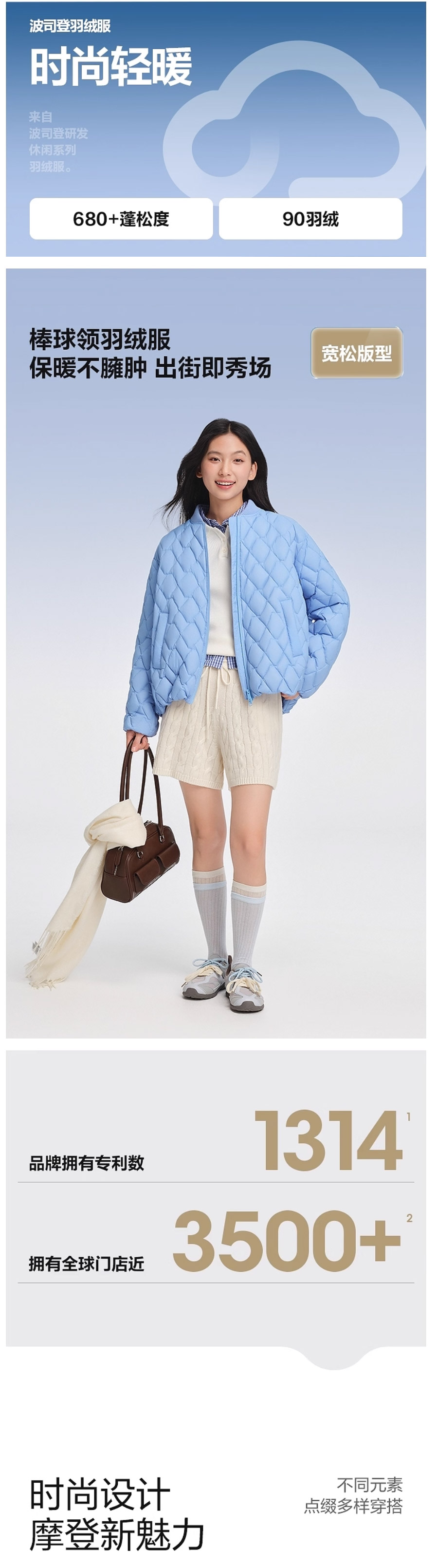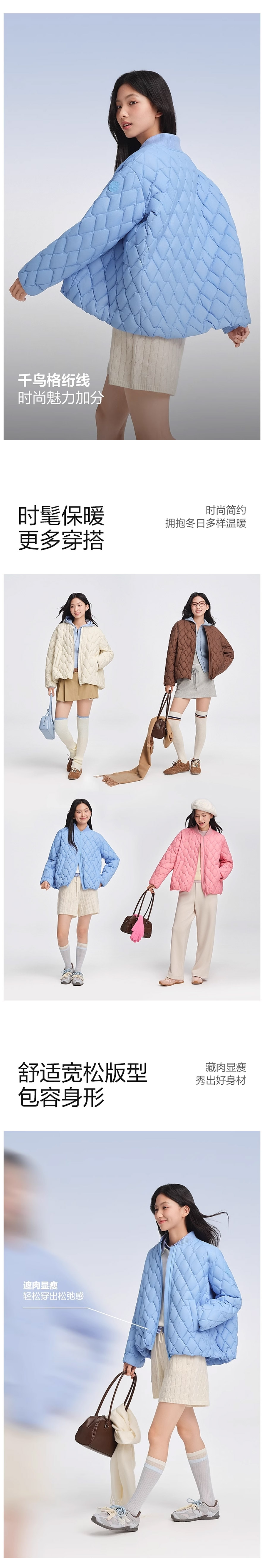 波司登2025秋新款羽绒服女棒球领廓形时尚轻薄短款外套B250135306