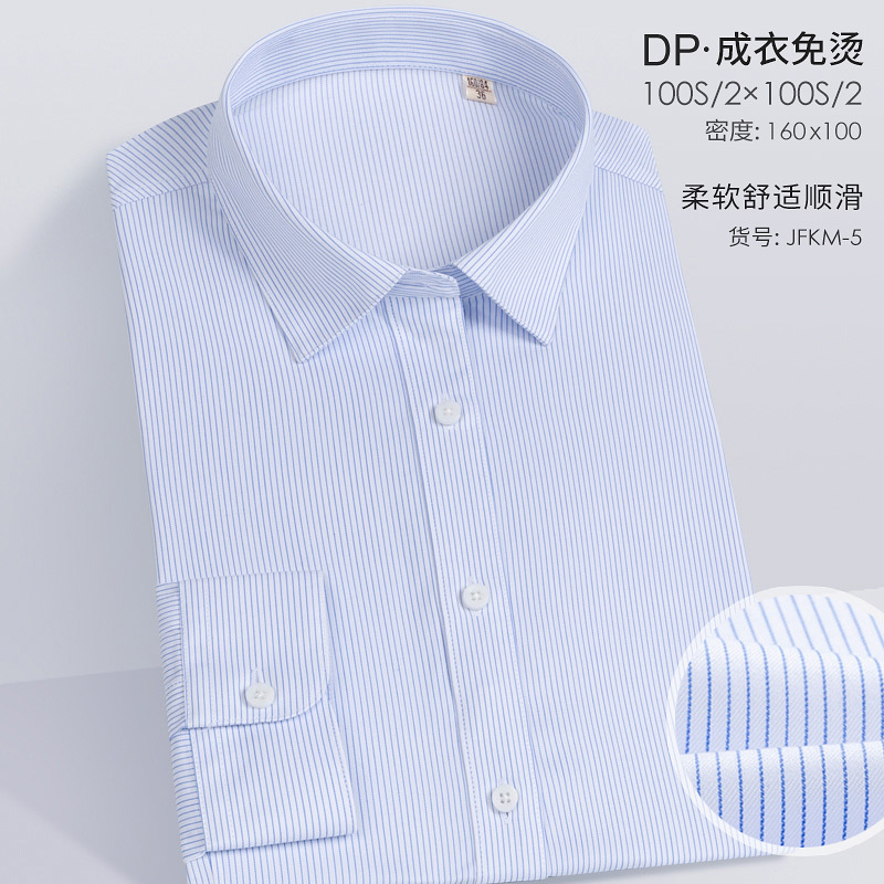 SENDI100支纱全棉成衣免烫女士蓝色细条纹长短袖衬衫