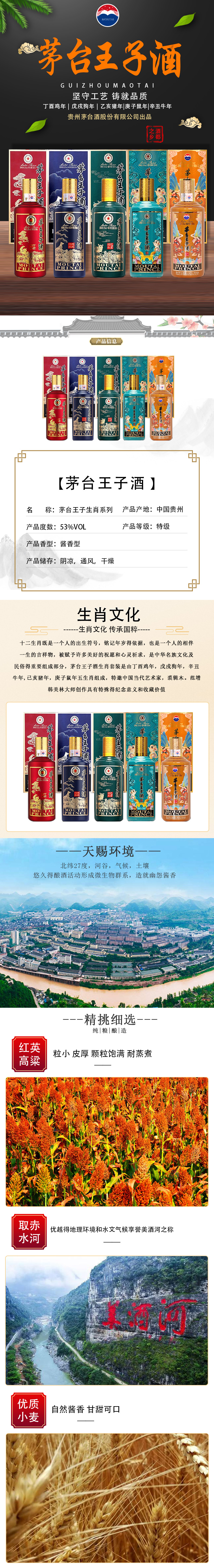 茅台王子酒生肖(鸡狗猪鼠牛)套装53度 500ml*5组合装
